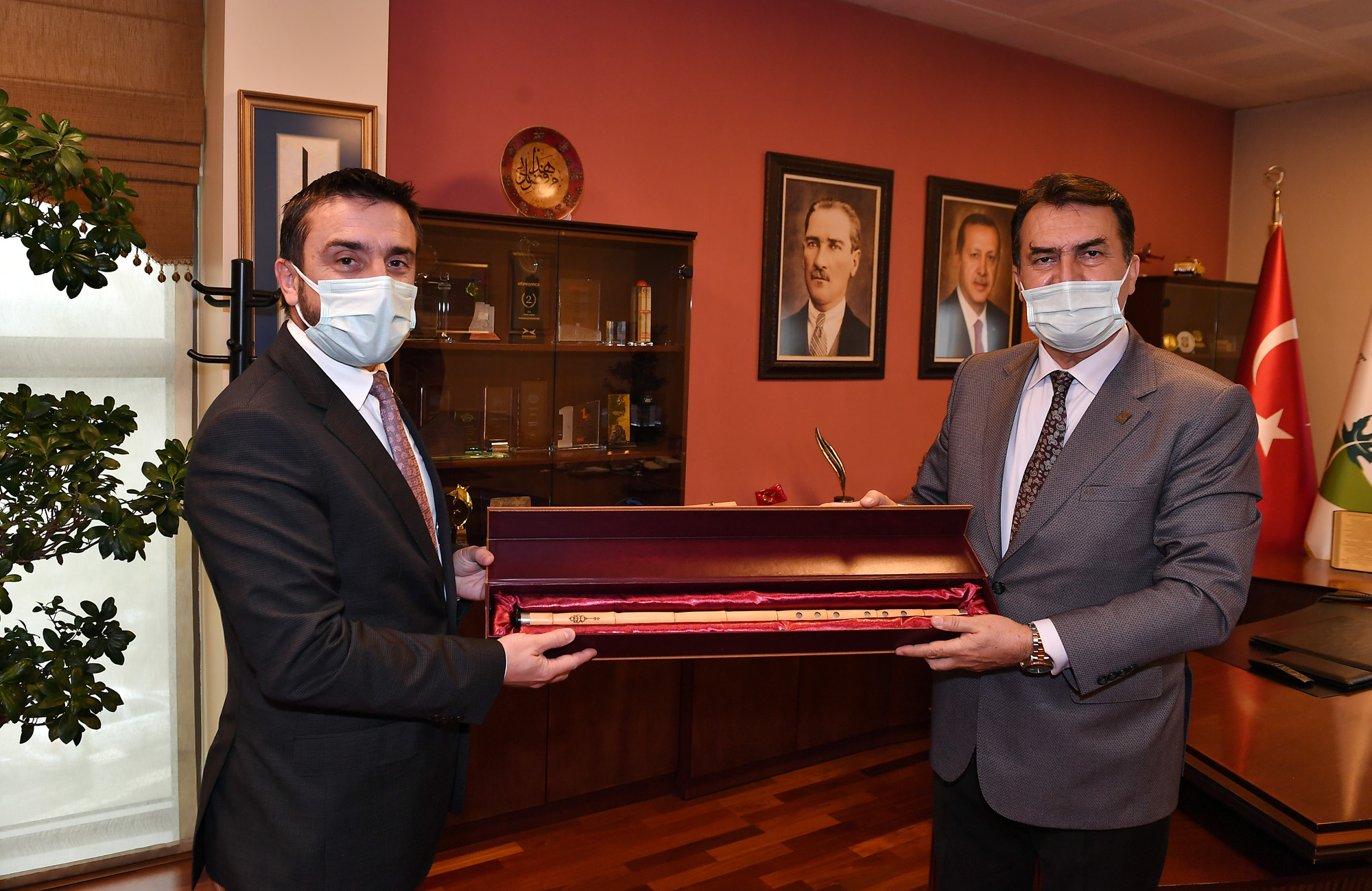 Başkan Dündar, Kestel Belediye Başkanı Önder Tanır’ın ziyaretinden duyduğu mutluluğu dile getirdi. Önder Tanır’ın belediye başkanlığında ilk dönemi olmasına rağmen yerel yönetimler konusunda oldukça tecrübeli bir isim olduğunu dile getiren Dündar, “Bu dönem ilk defa belediye başkanı seçilmiş olsanız da geçtiğimiz dönem meclis üyeliği ve Büyükşehir Belediyesi İmar Komisyonu Başkanlığı yaptığınızı biliyoruz. Belediye başkanlığında yeni olsanız da altyapı sahibisiniz. Belediye başkanlığı döneminizde de Allah hayırlı hizmetler versin” diye konuştu.