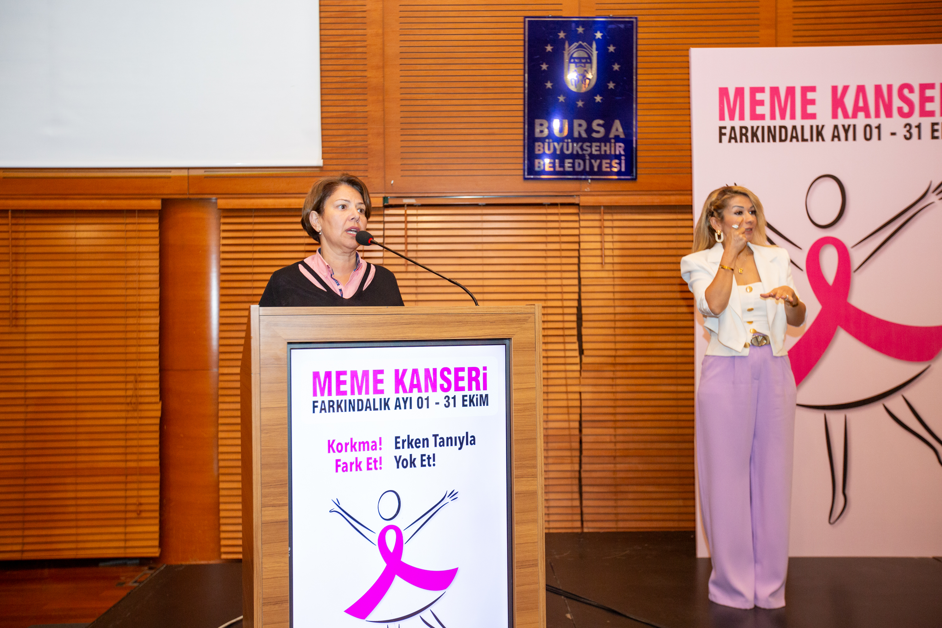 Bursa Büyükşehir Belediyesi’nin destekleriyle 1-31 Ekim Meme Kanseri Farkındalık Ayı kapsamında "Korkma! Fark Et! Erken Tanıyla Yok Et!" sloganıyla farkındalık eğitimi düzenledi. Etkinlikte meme kanserinde erken teşhisin hayat kurtarıcı önemi vurgulanırken, katılımcılara elle meme muayenesi eğitimi de verildi.