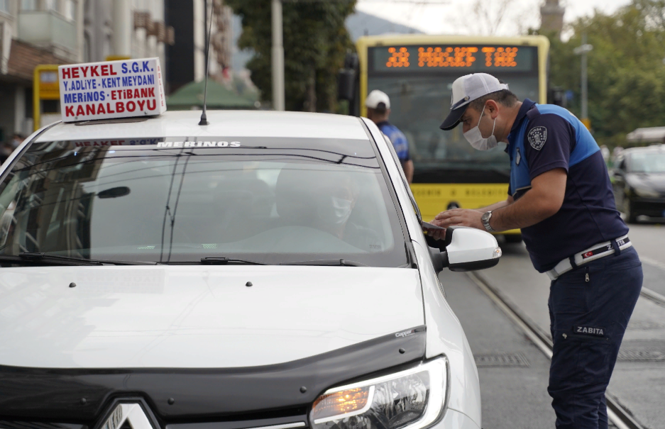 Bursa Büyükşehir Belediyesi Zabıta ekipleri, İl Hıfzıssıhha Kurulu kararları gereği arttırılan covid 19 önlemleri kapsamında hem şehirlerarası hem de şehir içi ulaşımı sağlayan toplu taşıma araçlarına yönetim denetimleri sıklaştırdı.