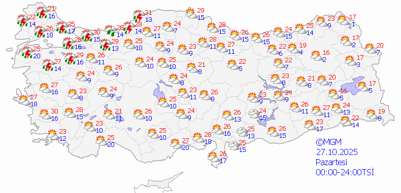 27 Ekim Pazartesi yurt genelinde hava durumu