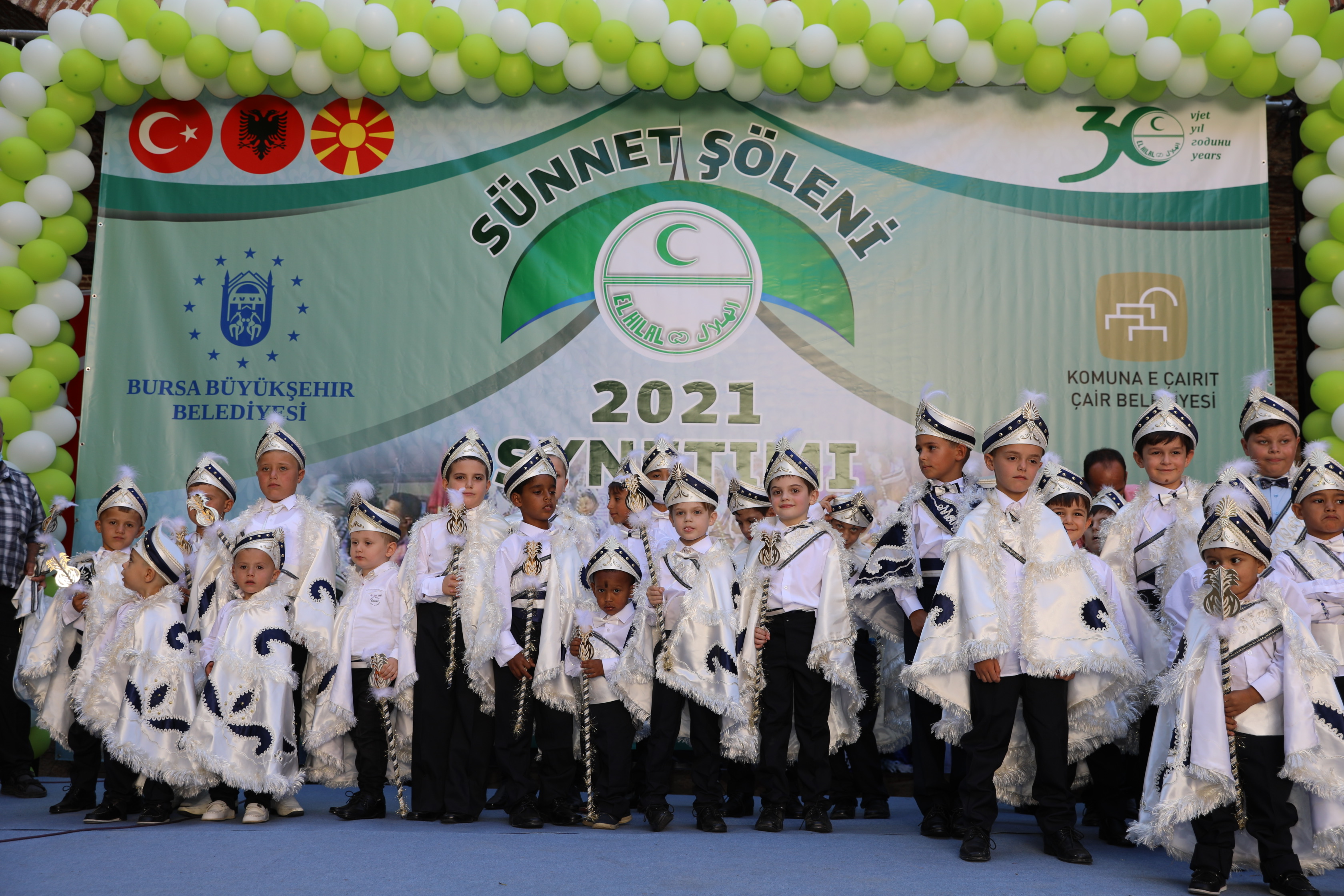Makedonya’nın başkenti Üsküp’te yaşayan Türk, Arnavut, Boşnak ve Makedon uyruklu 300 Müslüman çocuk, Bursa Büyükşehir Belediyesi, Üsküp Çayır Belediyesi ve El Hilal Yardımlaşma Teşkilatı tarafından düzenlenen törenle erkekliğe ilk adımlarını attı.