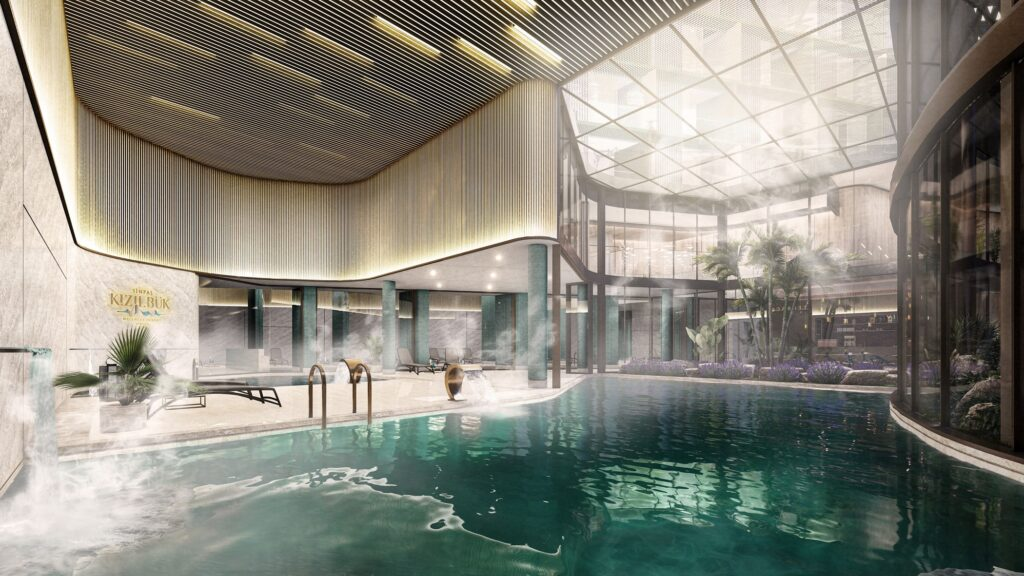 Sinpaş Kızılbük Thermal Wellness Resort’un deniz ve orman manzaralı sonsuzluk havuzu, sağlık kaynağı termal havuzlar, talassoterapi havuzları, Türk hamamı, sauna, buhar odası, buz çeşmesi, şok havuzlar, şok duşlar, jakuzi, masaj odaları, sıcak taş yataklar, macera duşları, yoga, yüz/vücut bakım odaları, dinlenme alanları ve vitamin barları ile misafirlerine tam bir arınma sunacak. Marmaris’e ve Türkiye’ye yaz kış daimî katma değer üreten bir işletme olması hedeflenen proje tamamlandığında, 2 bin kişiye direkt, 3 bin kişiye de dolaylı istihdam sağlanacak.