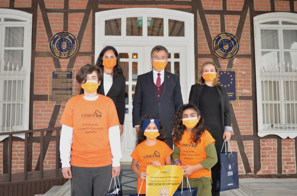 Lösemi tedavisi görev çocuklar, ‘2 – 8 Kasım Lösemili Çocuklar Haftası kapsamında Bursa Büyükşehir Belediye Başkanvekili Süleyman Çelik’i makamında ziyaret etti. Geçmiş dönemlerde maskeyle yaşamının verdiği zorlukları anlatan yetkililer, yaşanılan süreçten sonra toplumun lösemili çocukları daha iyi anlayabildiğini ifade etti.