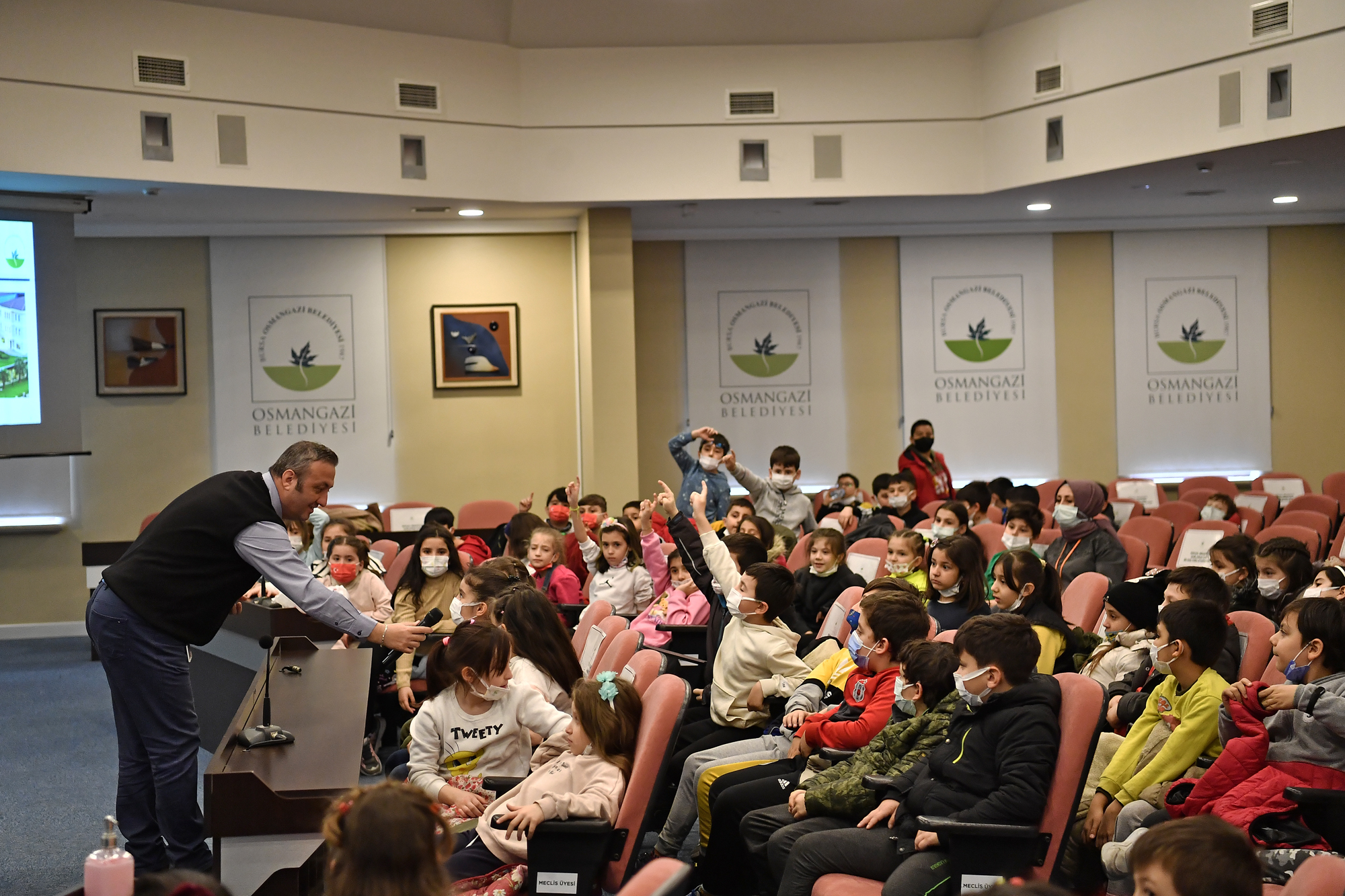 Müfredatlarında yerel alan yerel yönetim dersi için Osmangazi Belediye Meclis Salonu’nu dolduran Yusuf Köstem İlköğretim Okulu öğrencileri, başkan, başkan yardımcıları ve meclis üyeleri gibi yöneticiler ile birimlerin görev ve çalışma prensipleri gibi belediyenin işleyişi konusunda eğitim aldı.