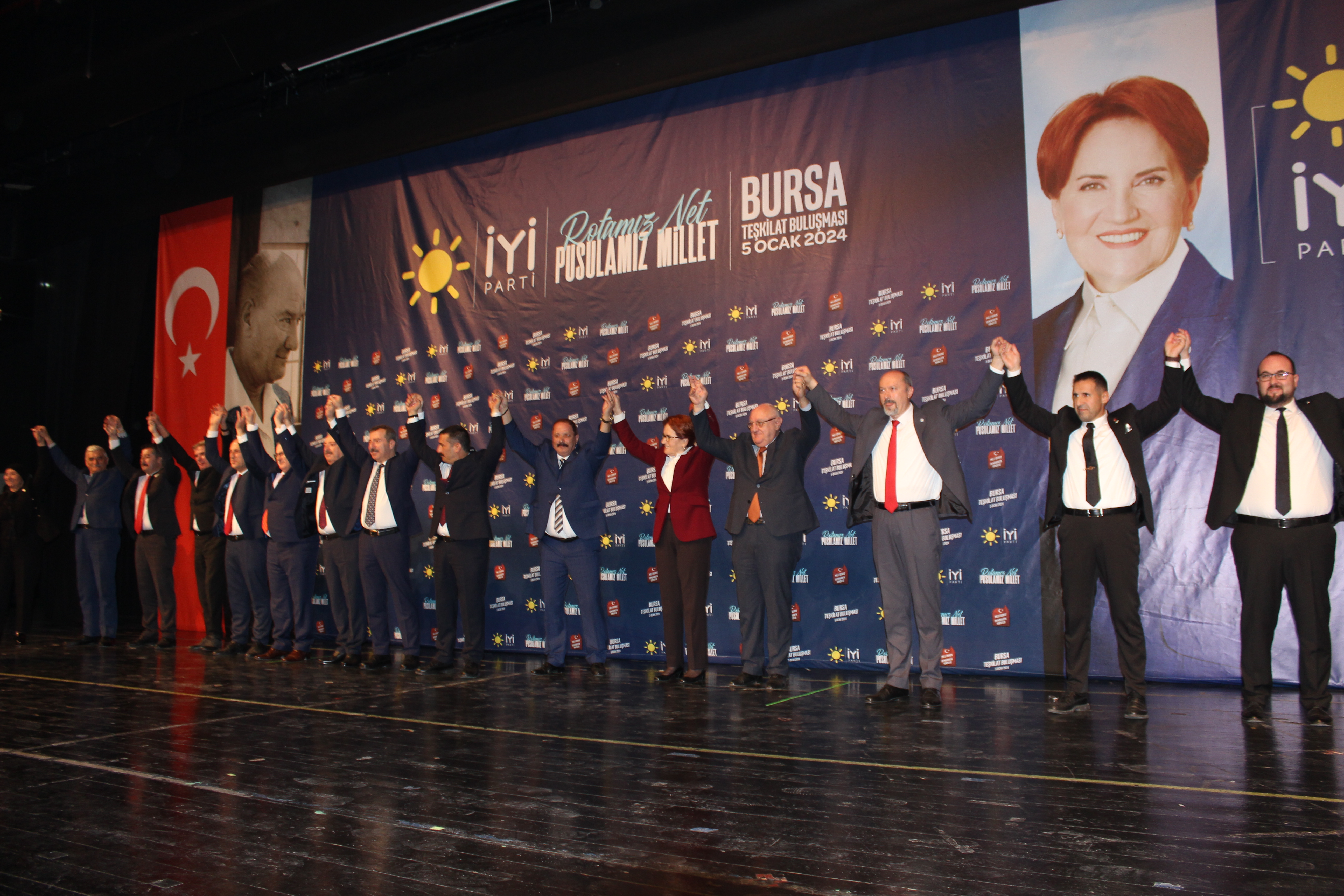 Merinos Atatürk Kongre ve Kültür Merkezi’nde partililer ve adaylar ile buluşan Akşener, Bursa Büyükşehir Belediye Başkan Adayı olarak Selçuk Türkoğlu’nu gösterdi.