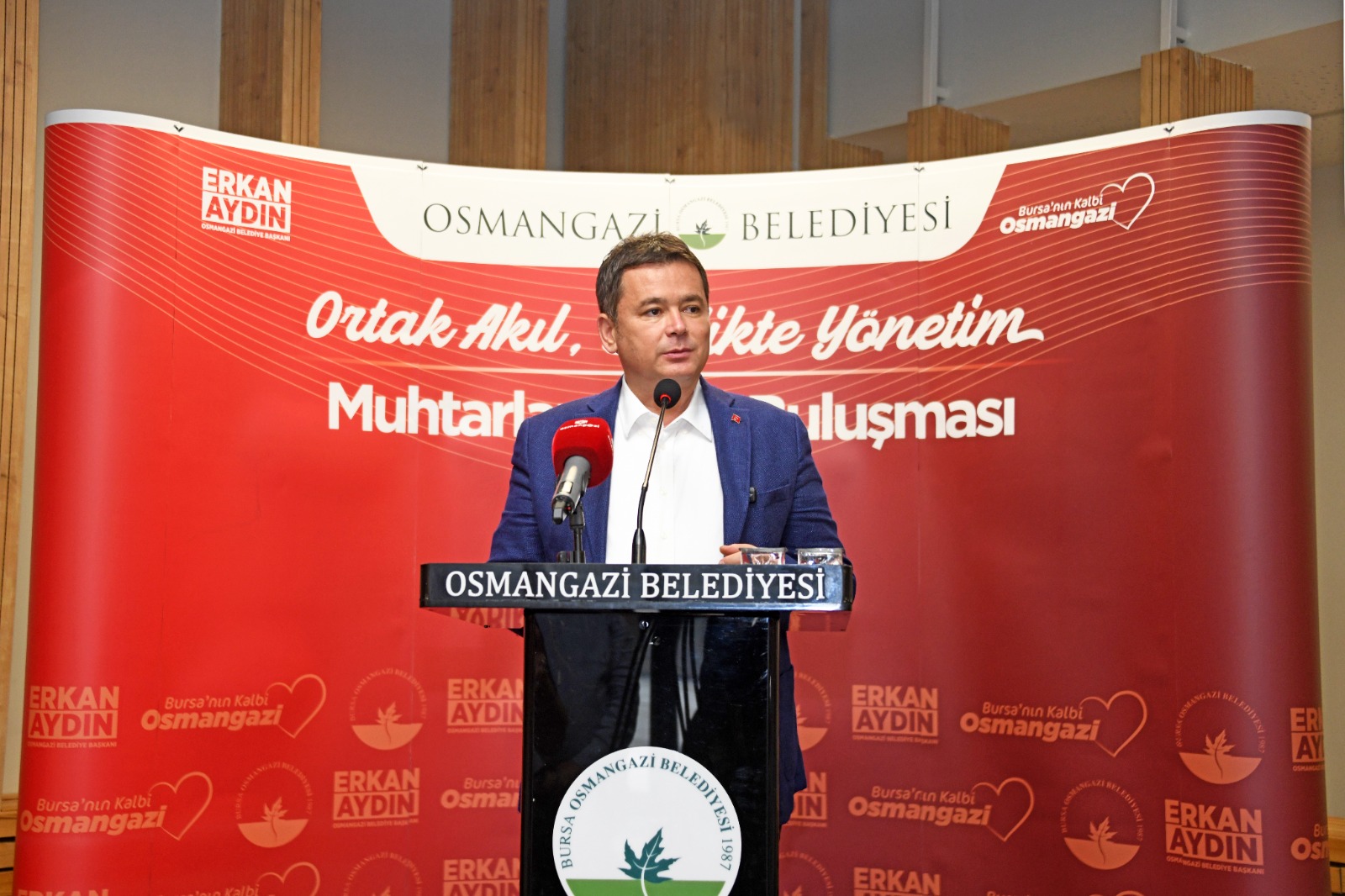 Başkan Aydın, muhtarlarla sadece Muhtarlar Günü'nde bir araya gelmediklerini, son 1,5 yılda 9 kez buluştuklarını belirtti. Her mahallenin farklı talepleri olduğunu ve imkanların sınırlı olduğunu dile getirdi. Geçtiğimiz hafta meclise sunulan bir kanun teklifine değinerek, belediye şirketlerinin üzerine kayıtlı bazı işletme, tapu, bina ve ticari yerlere el konulabileceğini ifade etti. Vakıflar Bölge Müdürlüğü'nün son 1,5 yılda belediyeye ait 6 yere el koyduğunu ve bu yerlerin Osmangazi halkının vergileriyle alındığını, onarıldığını ve hayata geçirildiğini söyledi. Bu yerlerin daha önce vakıflar tarafından ilgilenilmediğini ve şimdi fahiş fiyatlarla kiraya verilmeye çalışıldığını belirtti.
