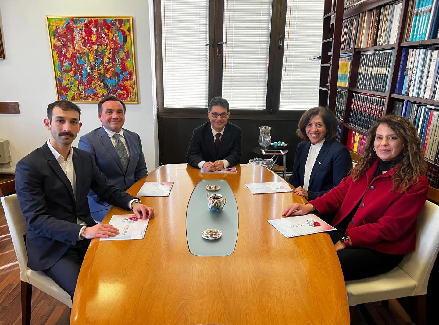 Acıbadem Sağlık Grubu Almanya Yöneticisi Nazlı Konrad ve Münih Sorumlusu Pınar Zenbil ile Almanya ve Münih’te köklü bir geçmişe sahip Münih Türkgücü Spor Kulübü Başkanı Taşkın Akkay ve Başkan Vekili Fatih Erdoğmuş, T.C. Münih Başkonsolosluğu’na ziyarette bulundu.