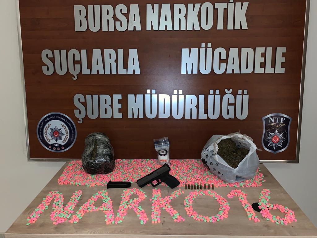 Bursa İl Emniyet Müdürlüğümüz, Narkotik Suçlarla Mücadele Şube Müdürlüğümüzce, uyuşturucu veya uyarıcı madde ticareti yapan şahısların suç unsurları ile birlikte yakalanmalarına yönelik olarak yapılan çalışmalar neticesinde;
