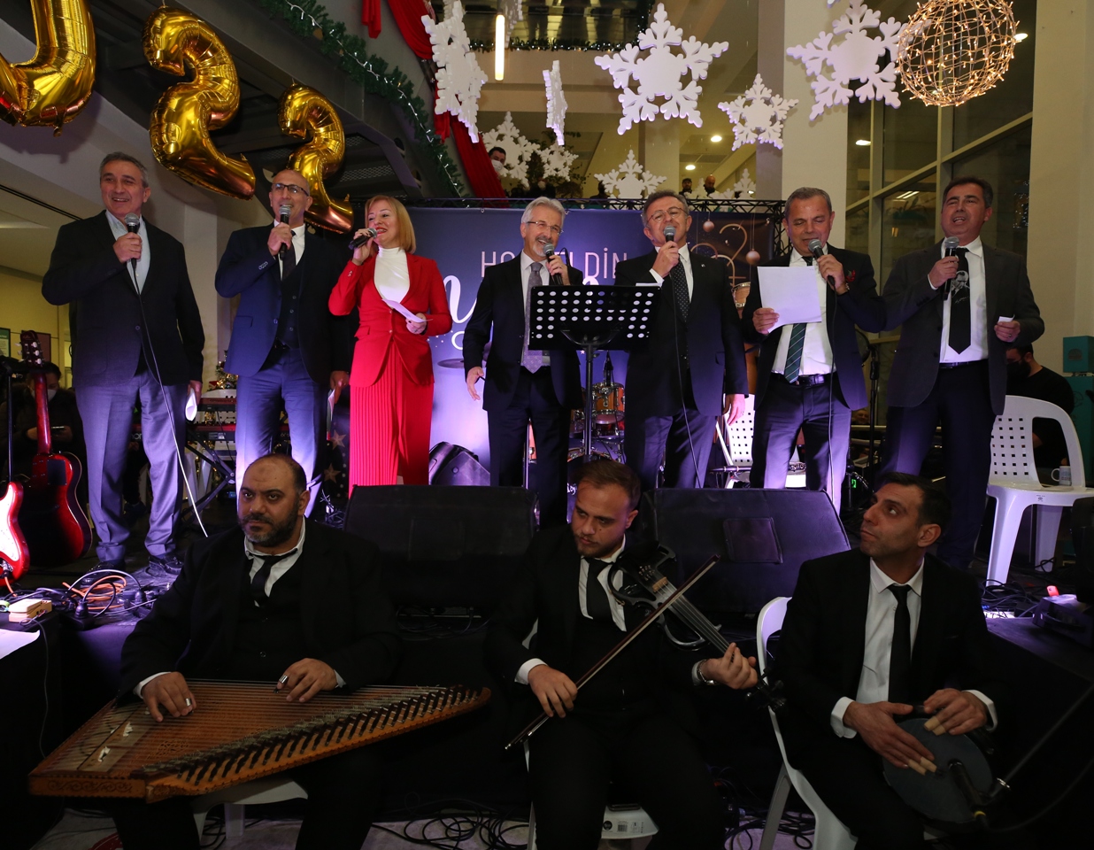 Başkan Erdem’in konuşmasının ardından çalışanlara bir de sürpriz yaptı. Nilüfer Belediye Başkanı Turgay Erdem ve Başkan Yardımcıları hep birlikte sahneye çıkarak çalışanlar için şarkı söyledi. Nilüfer Belediyesi’nin yeni yıl kutlamasında Cengiz Ateş de verdiği konserle herkesi coşturdu. Çalışanlar hep birlikte müziğe eşlik ederek bütün yılın yorgunluğunu atarken, yeni yıla da neşeyle merhaba dedi.