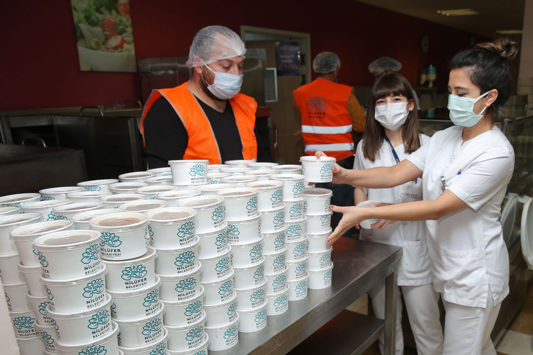 Nilüfer Belediyesi, pandemi döneminde büyük fedakârlıkla çalışan sağlık çalışanlarına, yüksek besin değerleriyle bağışıklığı güçlendirici özelliğe sahip olan aşure ikram etti.