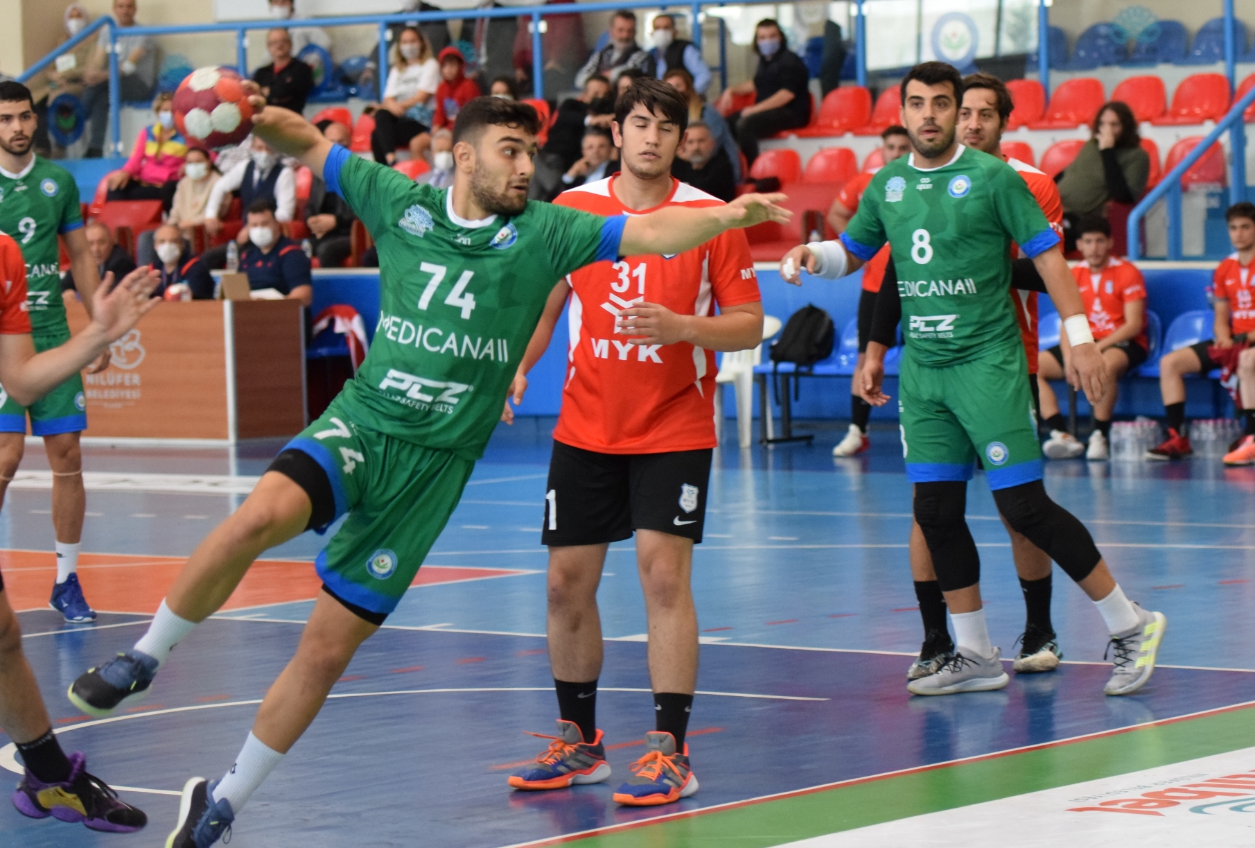 Hentbol Erkekler Süper Ligi 5. hafta maçında Nilüfer Belediyespor Erkek Hentbol Takımı, rakibi MYK Hentbol’u rahat bir oyunun ardından 30- 24 yendi.