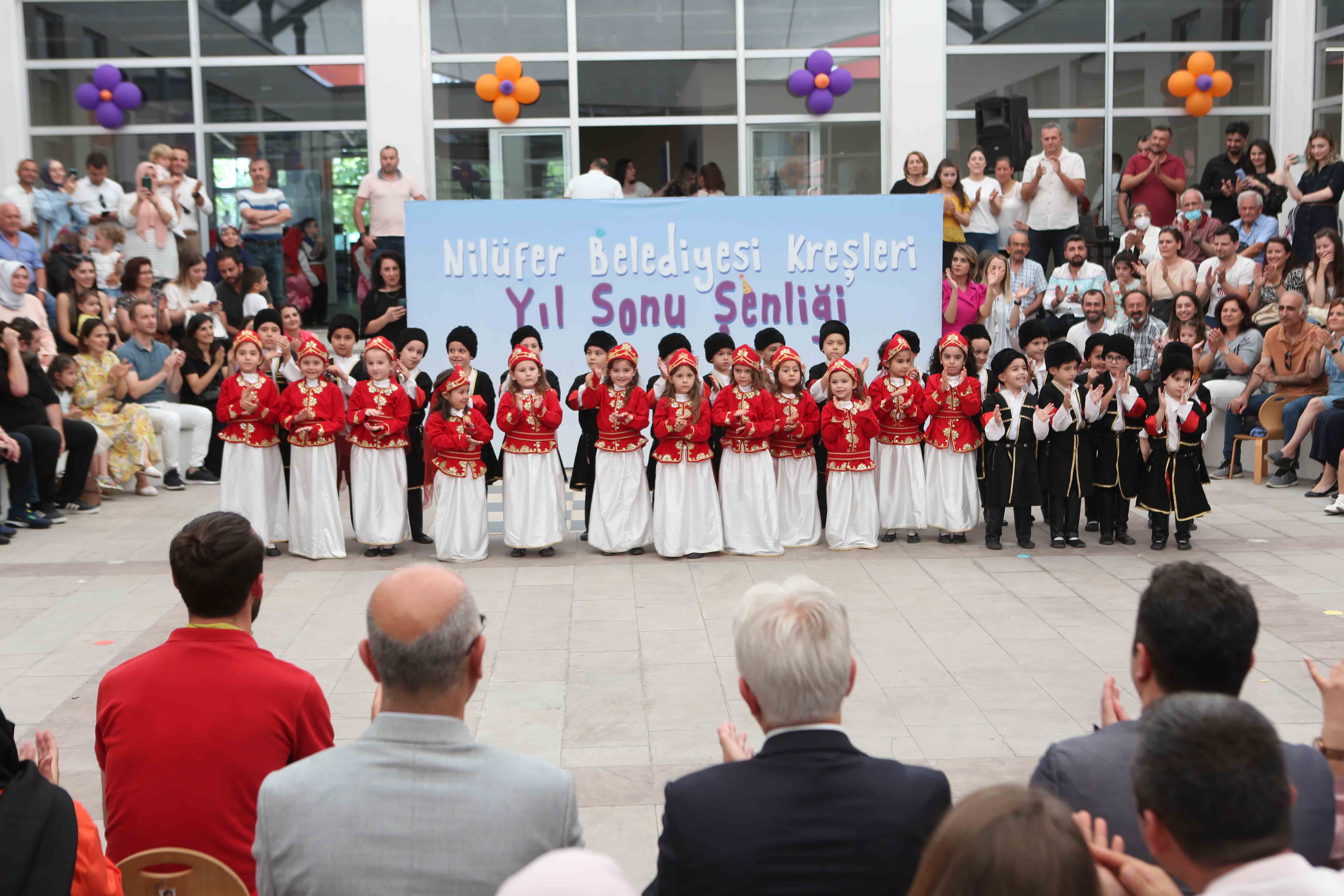 Nilüfer Belediyesi Burak Berk ve İzzet Şadi Sayarel kreşlerinin yılsonu şenliği Altınşehir Gençlik Merkezi’nde yapıldı. Miniklerin heyecanına Başkan Turgay Erdem de ortak oldu.