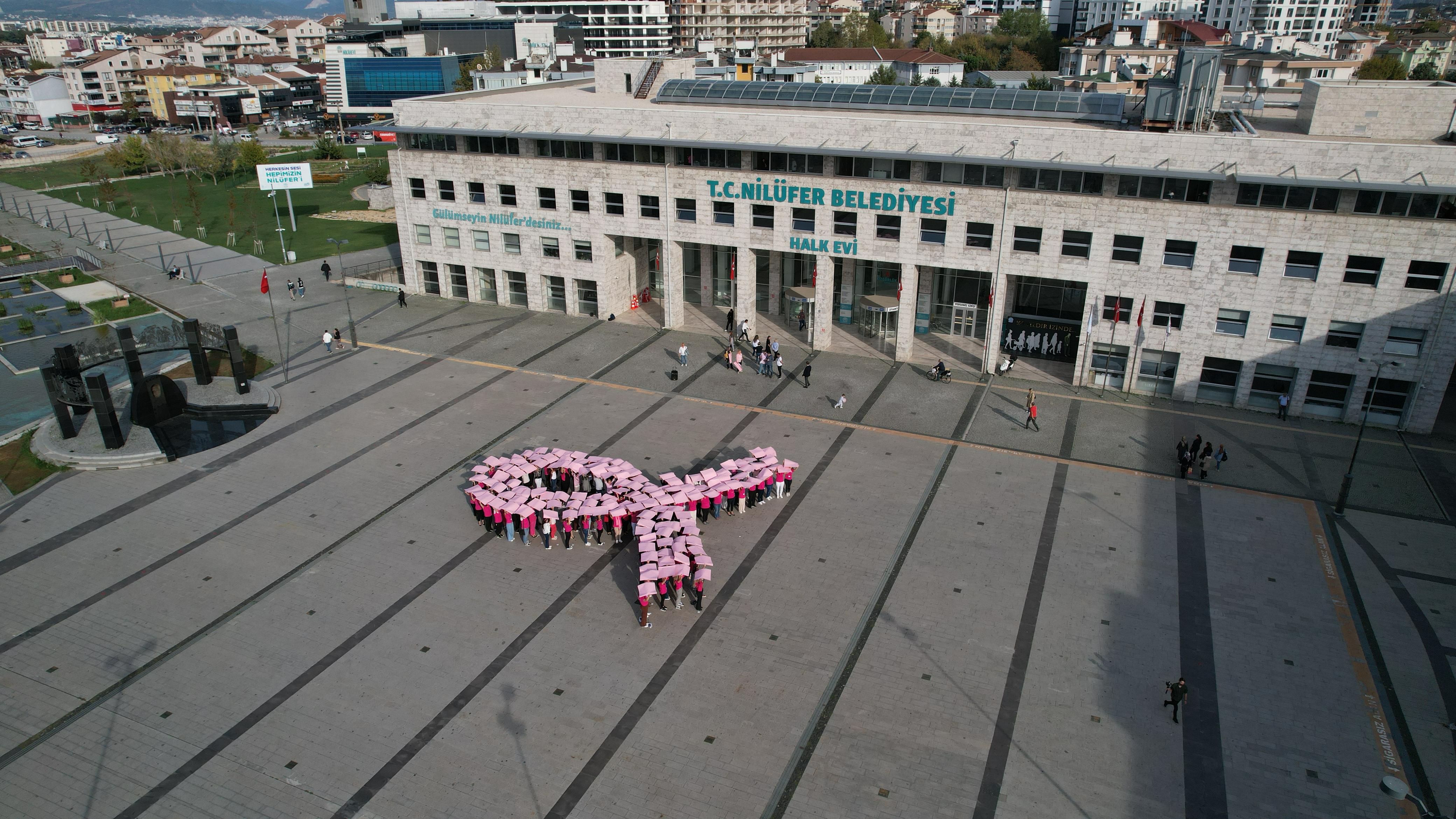 Etkinliğin sonunda, Nilüfer Belediyesi çalışanları ve ONKODAY gönüllüleri, Nilüfer Belediyesi Halk Evi önünde dev bir pembe kurdele oluşturarak meme kanseri konusunda farkındalık yarattı.