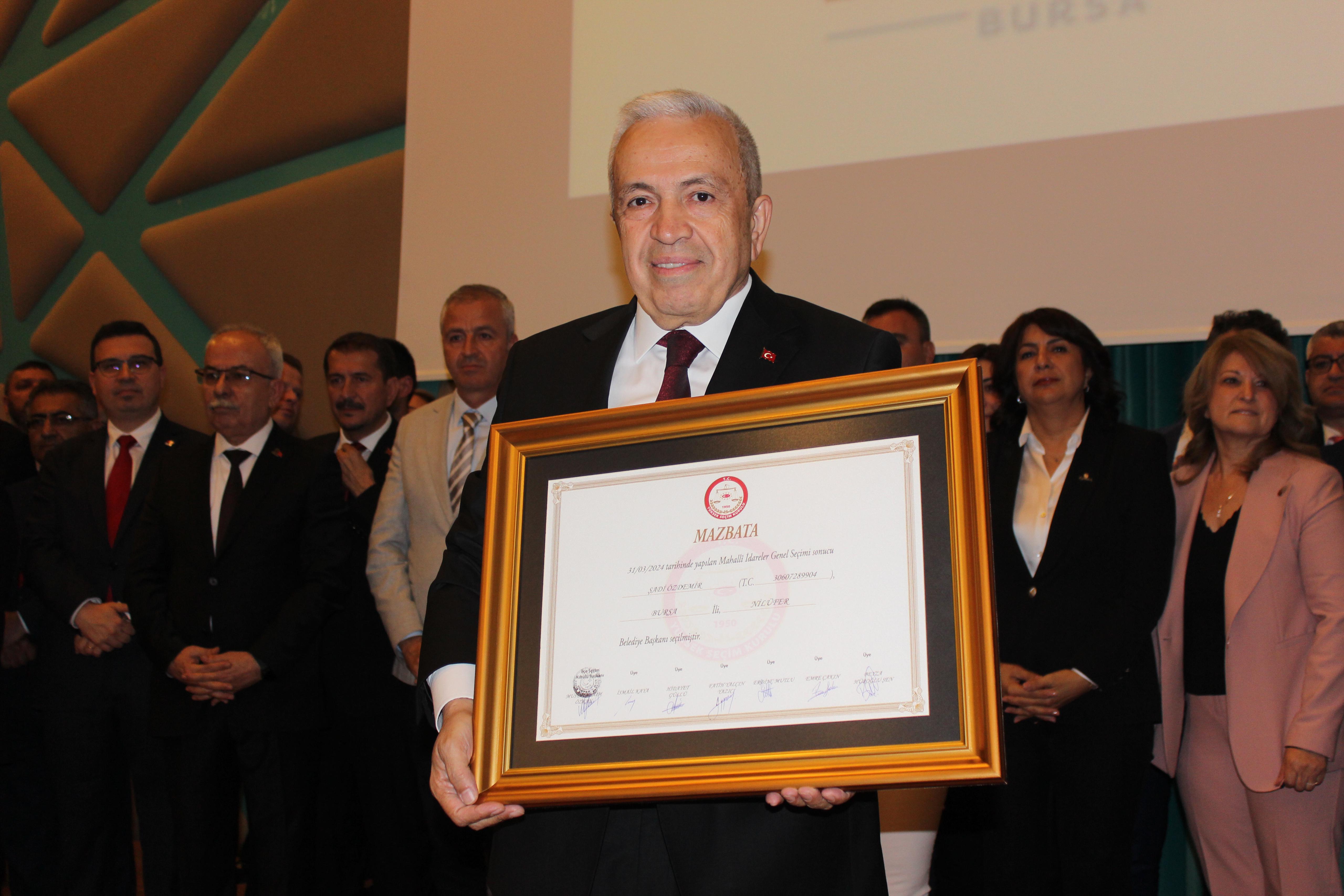 Mazbata töreninde konuşan Nilüfer Belediye Başkanı Şadi Özdemir, "Nilüfer sevginin, saygının, dayanışmanın kentidir. Nilüfer'in belediye başkanı olmamın benim için anlamı çok büyük. Çok uzun zamandan beri yakınında olduğum, yanında olduğum bir belediye burası. Bu kent çok güzel bir markalaşma süreci yaşadı. Kurulduğu günden bugüne çok hızlı kentleşti. Yirmi koca yılını veren sevgili Turgay Erdem başkanımıza bu marka kent yolculuğuna yapmış oldukları büyük katkılardan dolayı öncelikle çok teşekkür ediyoruz. Çünkü gerçekten bu kent yaşanabilir ise, bu kentte herkes yaşamak istiyorsa, herkes bunun yarattığı değerlerden yararlanmak istiyorsa ve hepimiz bu kentte mutluysak, huzurluysak, güvenliysek bunların ana sebebi başkanlarımızdır. Meclis grubu arkadaşlarımızla birlikte gecemizi gündüzümüze katacağız. Bu çıkardıkları çıtayı çok daha yukarıya çıkaracağız."dedi.