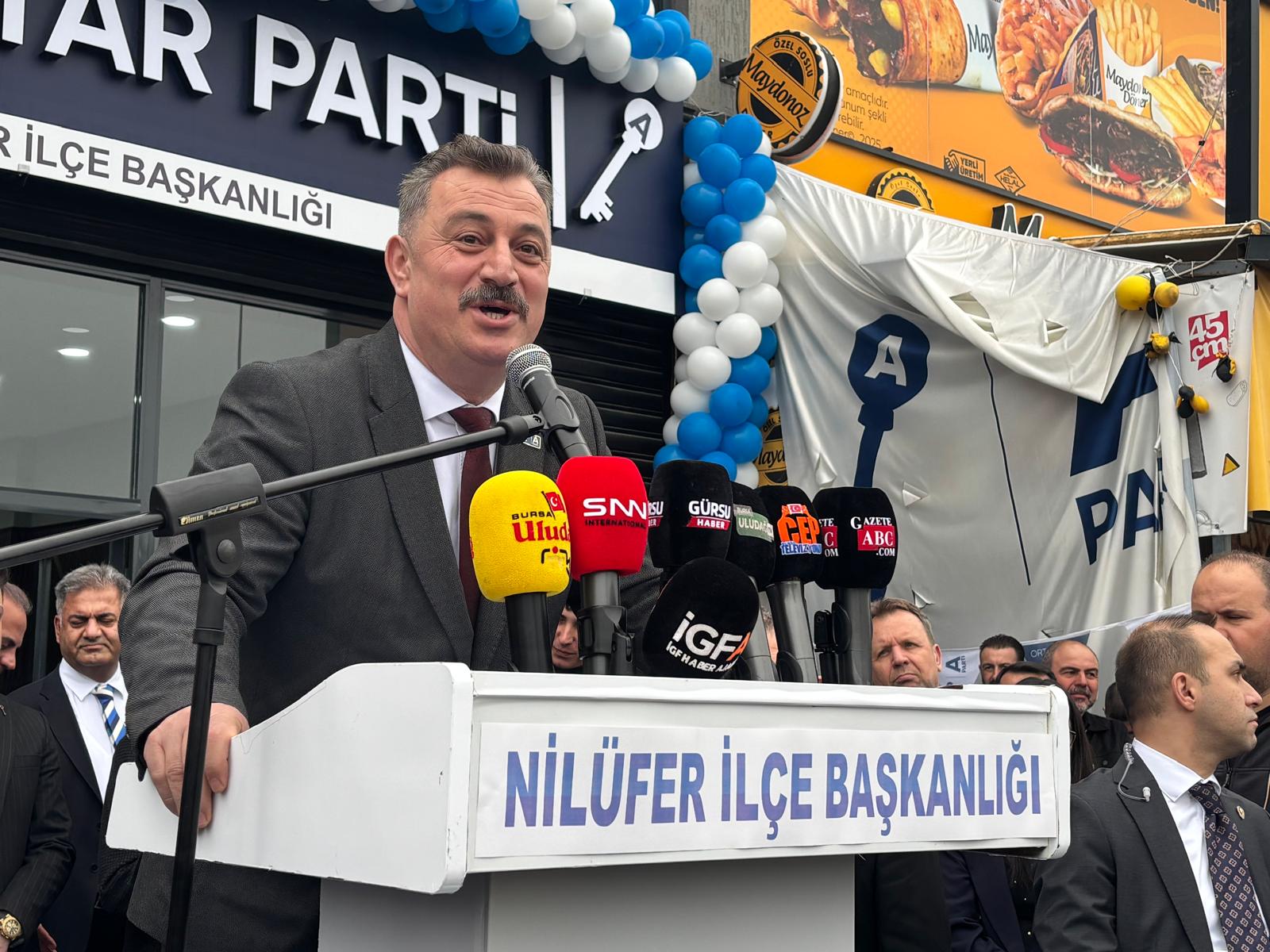 “Manevi iklimiyle bizleri birleştiren Ramazan ayının bu mübarek gününde, vizyonumuza değer katacak bu önemli adımla bizlerle olduğunuz için çok teşekkür ediyorum. Hepiniz hoş geldiniz, şeref getirdiniz. Bugün burada sadece bir siyasi temsilciliğin açılışını yapmıyoruz. Bugün biz, Nilüfer'in makul sesini, çözüm odaklı siyasetini ve her kesimi kucaklayan merkez anlayışını kurumsallaştırıyoruz. Bizim kapımız, görüşü ne olursa olsun bu kentin huzuruna, ekonomisine ve sosyal yaşamına katkı sunmak isteyen her bir vatandaşımıza sonuna kadar açıktır” dedi.