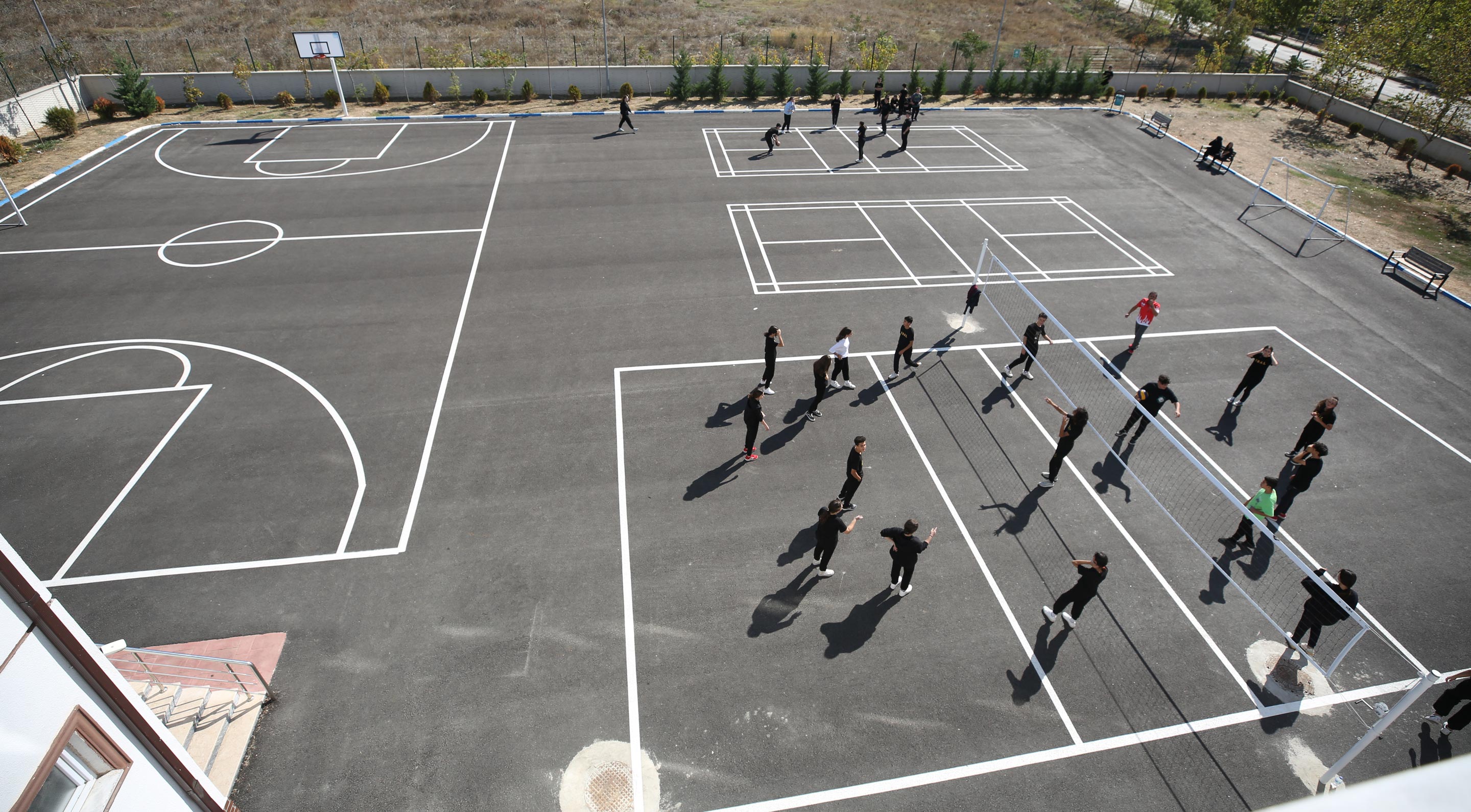 Nilüfer’de düzenlediği atölye ve eğitimlerle öğrencilerin kişisel gelişimlerine katkıda bulunan Nilüfer Belediyesi, öğrencilerin modern ve kaliteli bir ortamda öğrenim görmeleri amacıyla da okul alanlarında bakım, onarım ve yenileme çalışmaları yapıyor. Bu çalışmalardan biri de, Özlüce Mahallesi’ndeki Ertuğrul Seyhan Anadolu Lisesi’nde yapıldı. Nilüfer Belediyesi Ulaşım Hizmetleri Müdürlüğü’ne bağlı ekipler, yaklaşık 2 bin metrekarelik alanda yaptığı çalışmayla okul bahçesini, aynı anda çeşitli sporların yapılabildiği spor alanına dönüştürdü. Ekipler, daha önce beton zemine sahip alanda sıcak asfalt uygulaması yaparak, voleybol, futbol ve üç adet de badminton sahası oluşturdu. Bu sayede beden eğitimi derslerini daha nitelikli bir ortamda sürdüren öğrenciler, ders aralarında da keyifli vakit geçiriyor.