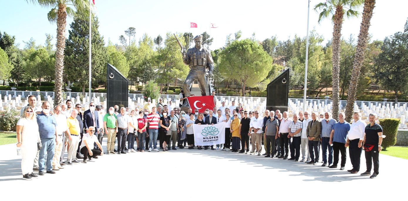 Başkan Turgay Erdem ve beraberindekiler daha sonra Kapalı Maraş Bölgesi’ni ziyaret ederek, incelemelerde bulundu. Girne’deki Boğaz Şehitliği’ni de ziyaret eden Nilüfer heyeti burada, Barış Harekatı’nda şehit olan Nilüfer Belediye Meclisi Üyesi Mesut Şehitoğlu’nun babası ve tüm şehitler için dua etti.