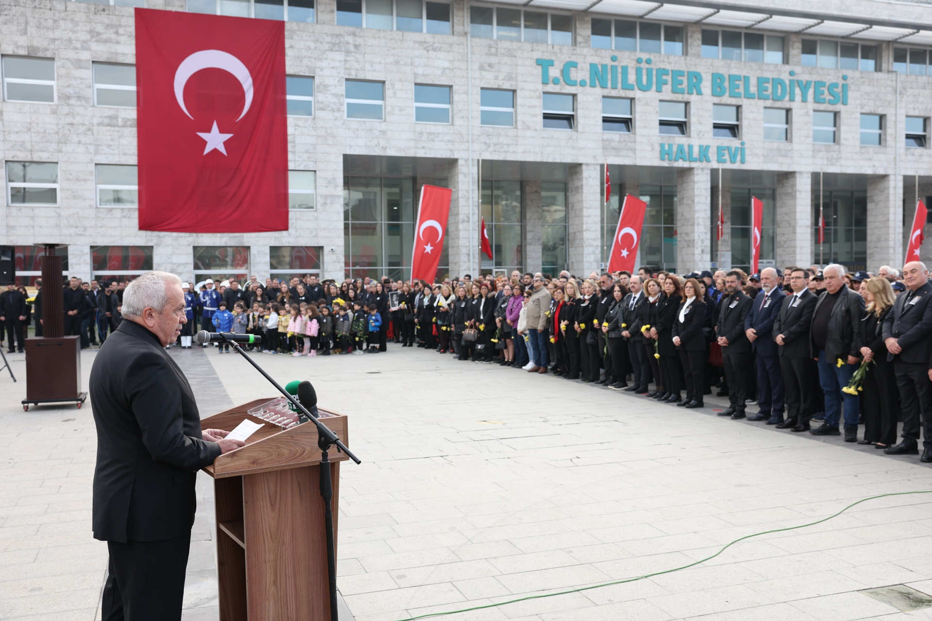 Tören, Atatürk Anıtı'na Nilüfer Belediyesi çelenginin bırakılmasıyla başladı. Saatler 09.05'i gösterdiğinde ise yaşam adeta durdu. İki dakikalık saygı duruşu esnasında Cumhuriyet Meydanı'nı dolduran Nilüferliler, Atatürk'ü hüzün ve minnetle andı. Tören, İstiklal Marşı'nın coşkuyla okunmasıyla devam etti ve bu esnada bayraklar yarıya indirildi.