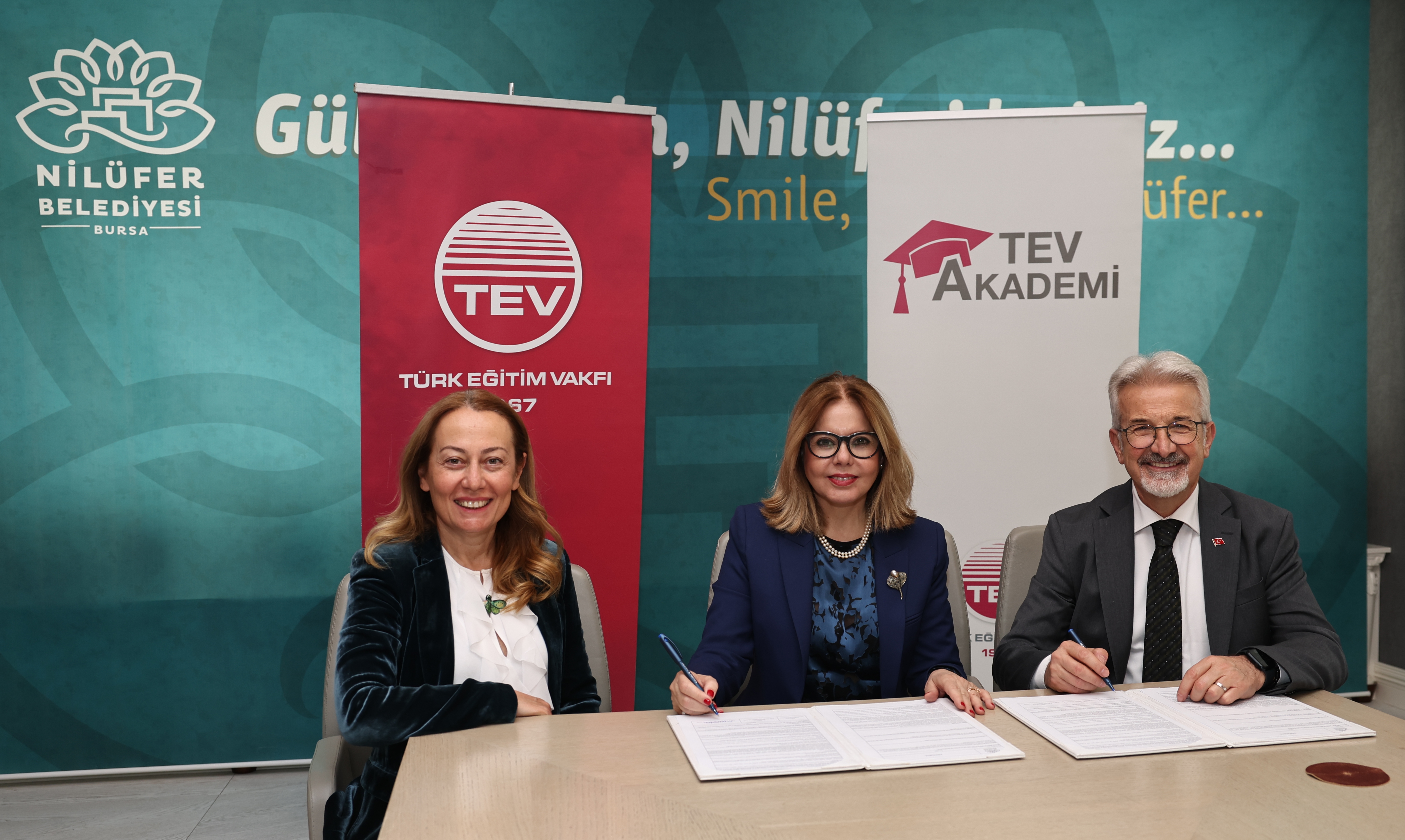 Nilüfer Belediye Başkanı Turgay Erdem, TEV Genel Müdürü Banu Taşkın ve TEV Yönetim Kurulu Üyesi A. Fatma Dilek Mutuş’un imzaladığı protokol, Nilüfer Belediyesi Halkevi’nde gerçekleşti.