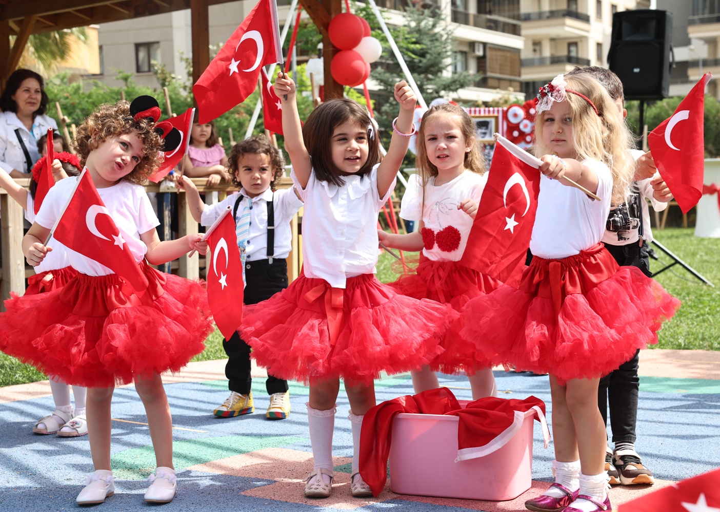 Kutlama programına, minik öğrencilerin ailelerinin yanı sıra Nilüfer Belediye Başkanı Şadi Özdemir’in eşi Nuray Özdemir, Nilüfer Belediye Başkan Yardımcısı Dr. Sibel Özer, Nilüfer Belediye Meclisi Üyeleri Serpil Altun ve Tuğçe Savaş da katıldı. Saygı duruşu ve İstiklal Marşı’nın okunmasının ardından başlayan etkinliklerde 3 ile 6 yaş arasındaki çocuklar, birbirinden renkli gösterileri sergileyerek bayramı coşkuyla kutladı.