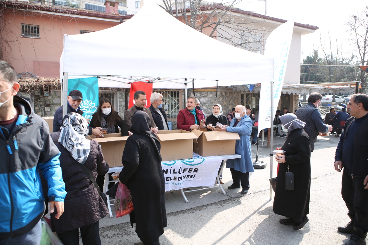 Nilüfer Belediyesi Miraç Kandili nedeniyle ilçedeki pazar yerlerinde kandil simidi ikramında bulunurken, belediye meclis üyeleri ve muhtarlar da vatandaşların kandillerini kutladı.