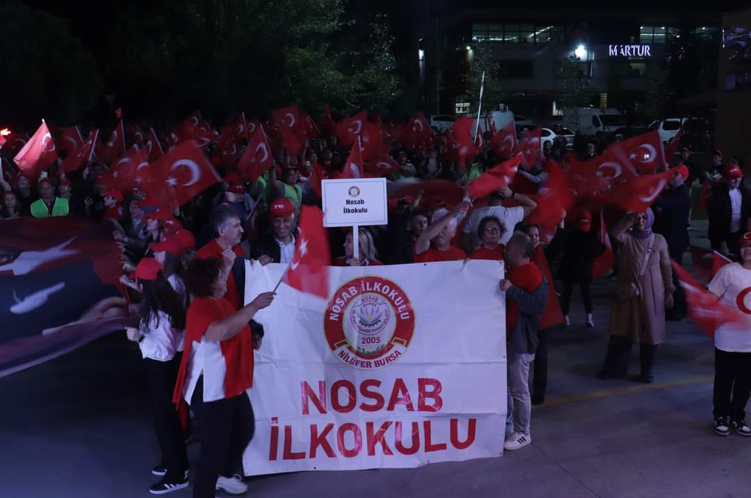 Bursa’nın Nilüfer ilçesinde bulunan NOSAB ve NİLSİAD, Cumhuriyetin 100. yılını coşkuyla kutladı. Bölge sanayicileri, çalışanları, STK temsilcileri, meslek liseli öğrenciler ve vatandaşlardan oluşan kalabalık topluluk, ellerinde bayraklarla coşkulu bir şekilde NOSAB Atatürk Bulvarı’nda Cumhuriyet Yürüyüşü gerçekleştirdi.