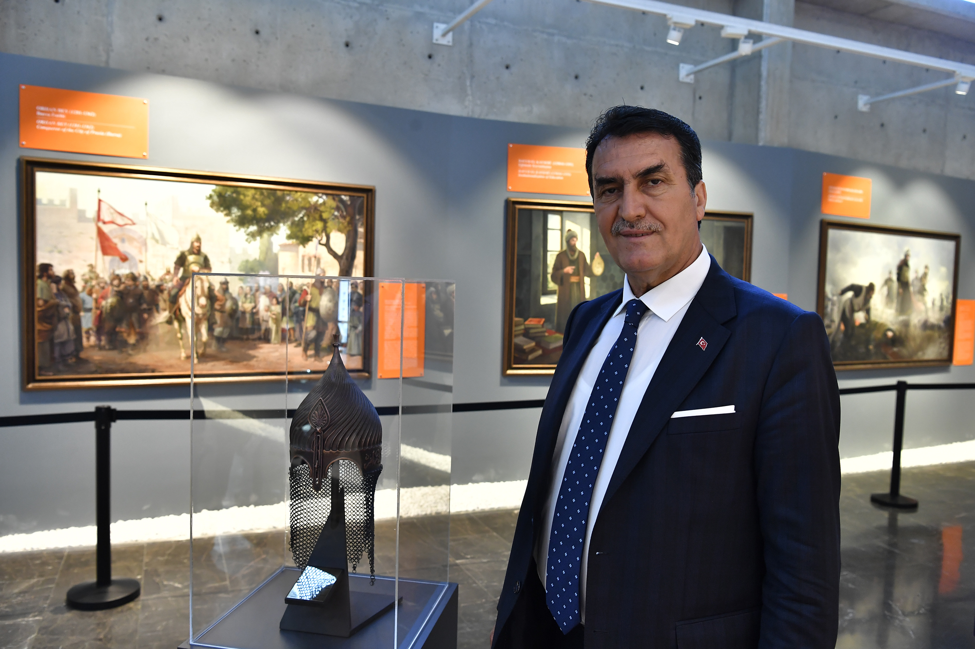 Osmanlı döneminin önemli olaylarının resmedildiği kronolojik sergi salonunda bulunan Orhan Gazi’nin miğferinin replikası, tarihe merak duyan ziyaretçilerin müze ziyaretlerindeki ilk nokta oldu. Miğferin replikasını inceleyen Osmangazi Belediye Başkanı Mustafa Dündar, “Bursa’nın fethi 1326 yılında Orhan Gazi tarafından gerçekleşmiş, fetihten sonra Bursa bey sancağı ve devletin başkenti olmuştur. Osmangazi Belediyesi olarak, yaşadığımız kenti fetheden ve bu toprakları bize yurt yapan başta Osman Gazi ve Orhan Gazi olmak üzere tüm ecdadımızı her zaman minnetle anıyoruz. Bursa’nın fetih gününü tüm detaylarıyla bu günümüze aktardığımız Fetih Müzesi’nde Bursa’nın fatihi Orhan Gazi’nin miğferinin replikasını da vatandaşlarımızla buluşturmaktan dolayı mutluyuz” dedi.