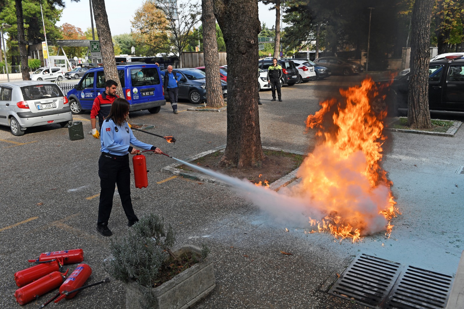 Yangın türleri ve yangına ilk müdahalenin öneminin anlatıldığı zabıta personeline olası bir yangın durumunda yapılması ile yapılmaması gerekenler tatbikatla gösterildi. Tatbikatta yangın türleri hakkında bilgi alan personeller, yangına bilinçli şekilde müdahale etmeyi de öğrendi. Osmangazi Belediyesi sivil savunma uzmanları yangınlar