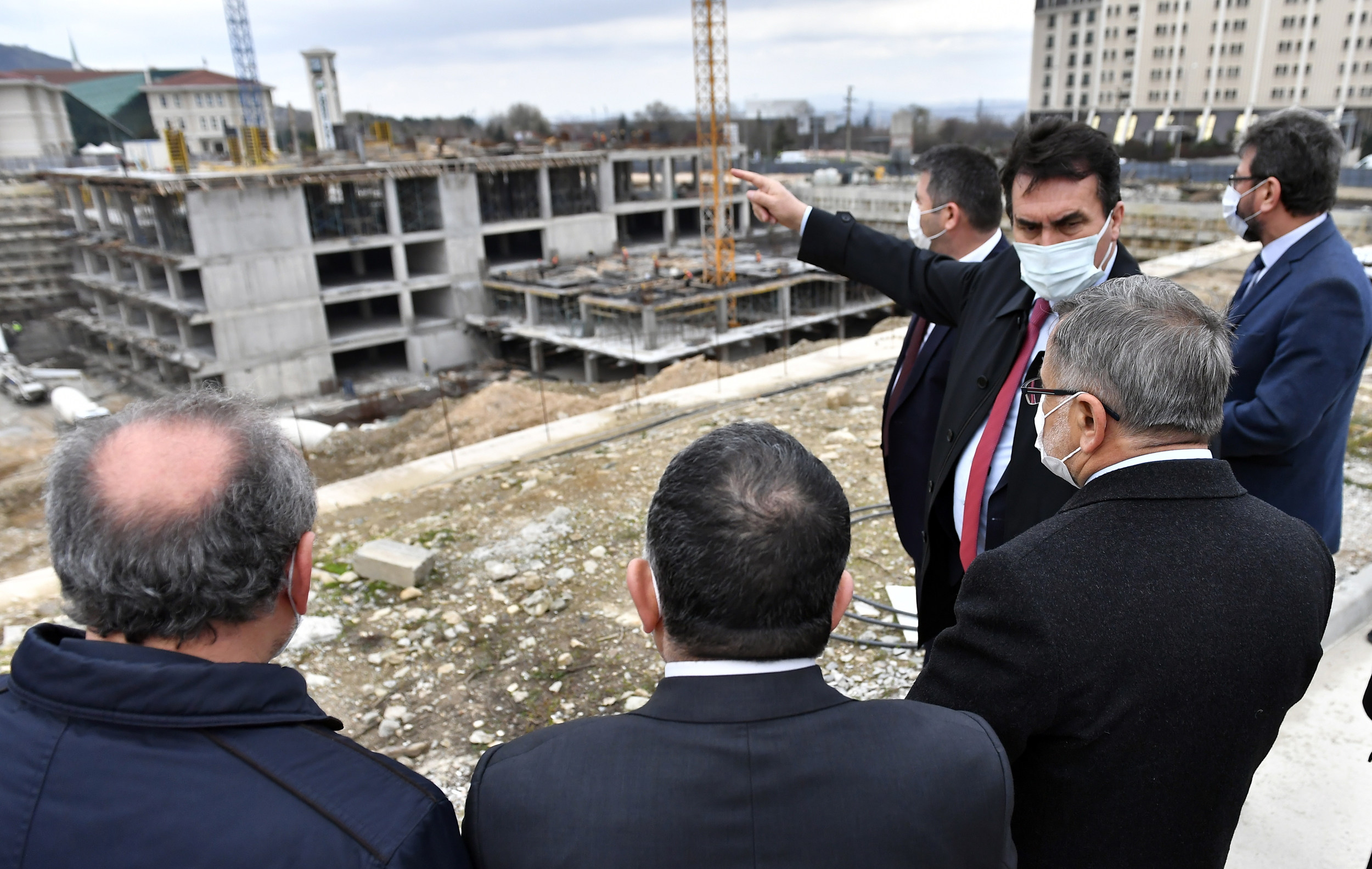 Bursa’nın son dönemdeki en önemli projeleri arasında yer alan Osmangazi Meydanı’ndaki çalışmalar tüm hızıyla devam ederken, inşaat çalışmalarını yakından inceleyen Bursa İl Müftüsü İzani Turan ile ilçe müftüleri ve imam hatipler, şantiye alanında dualar etti.