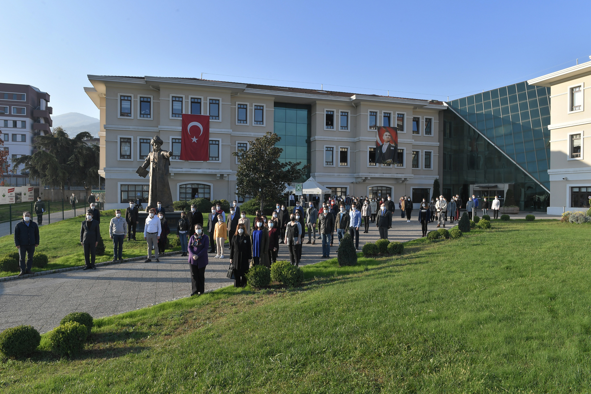 Osmangazi Belediyesi çalışanları, Atatürk’ün vefatının 82. yıldönümünde saat 09.05’te belediye binası önünde 1 dakikalık saygı duruşunda bulundu.