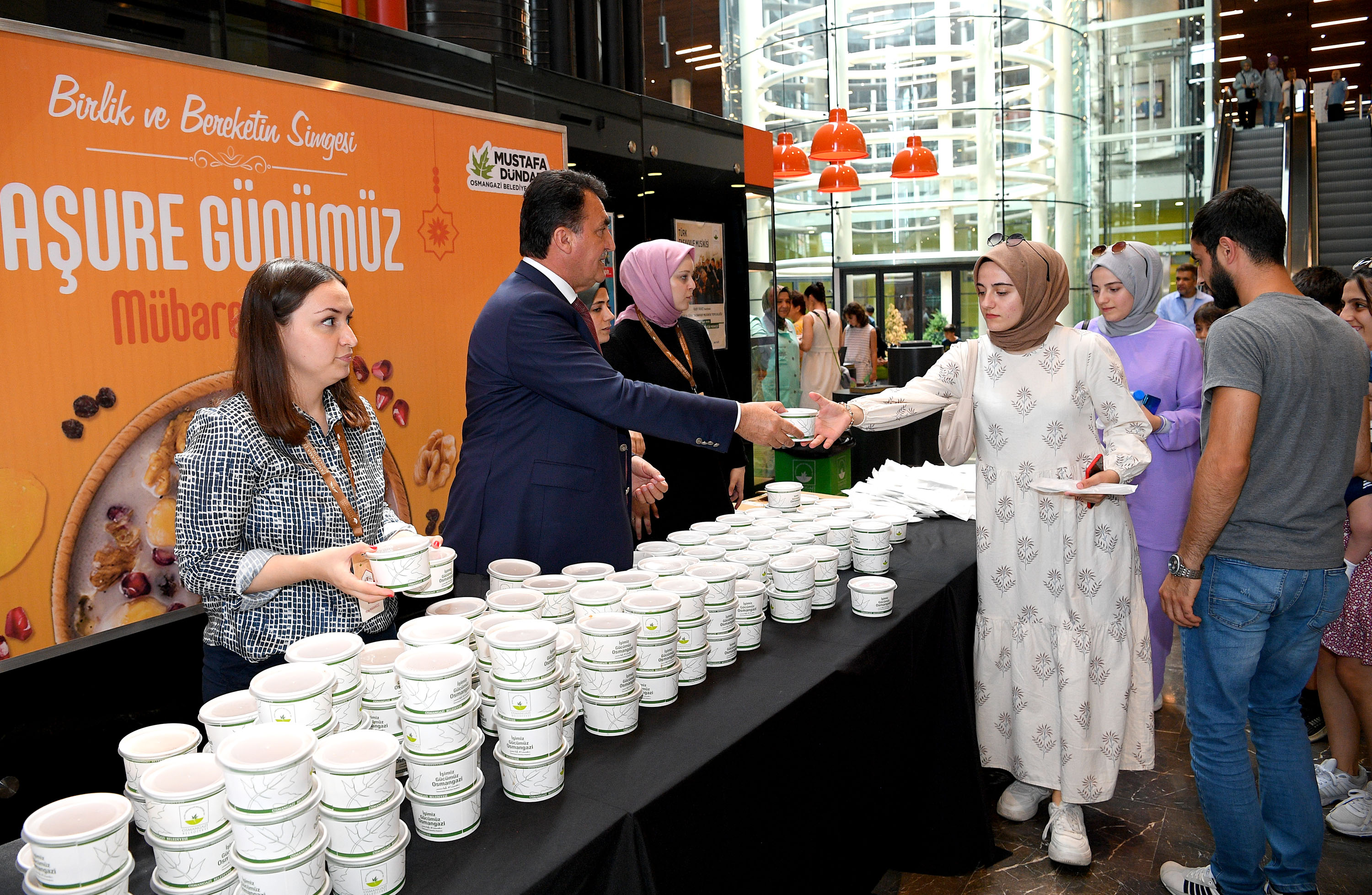 Vatandaşlar ile birlikte bereket duası yaptıktan sonra aşure dağıtımını başlatan Başkan Dündar, “Osmangazi Belediyesi olarak her yıl Muharrem ayında aşure dağıtarak bu ayın bereketini vatandaşlarımızla paylaşıyoruz. Aşure, bizlerin güzel bir geleneği. Bu geleneği yıllardan beri sürdürüyor ve geleceğe aktarıyoruz. Aşurenin bir mesajı vardır. Aşure, bir olmak, birlik olmak, bütün olmak demektir. İnsanların Kerbela’da yaşanan zulme dur demesinin bir mesajıdır aşure. Türkiye, günümüzde aynı aşure gibi bir bütün olarak zulmedenlere ve zalimlere karşı dur demektedir. Türk Milleti tarihte olduğu gibi yeniden ileriye doğru yürümekte ve mazlum insanlara kanat germektedir. 3 kıtaya yayılan adaleti, huzuru ve güvenliği tahsis eden bir anlayış üzerinde bulunduğumuz bu topraklardan çıkmıştır. Bu düşünce ile aşuremizi dağıtıyor ve dualarımızı yapıyoruz. Aşuremiz bereketli olsun” diye konuştu.