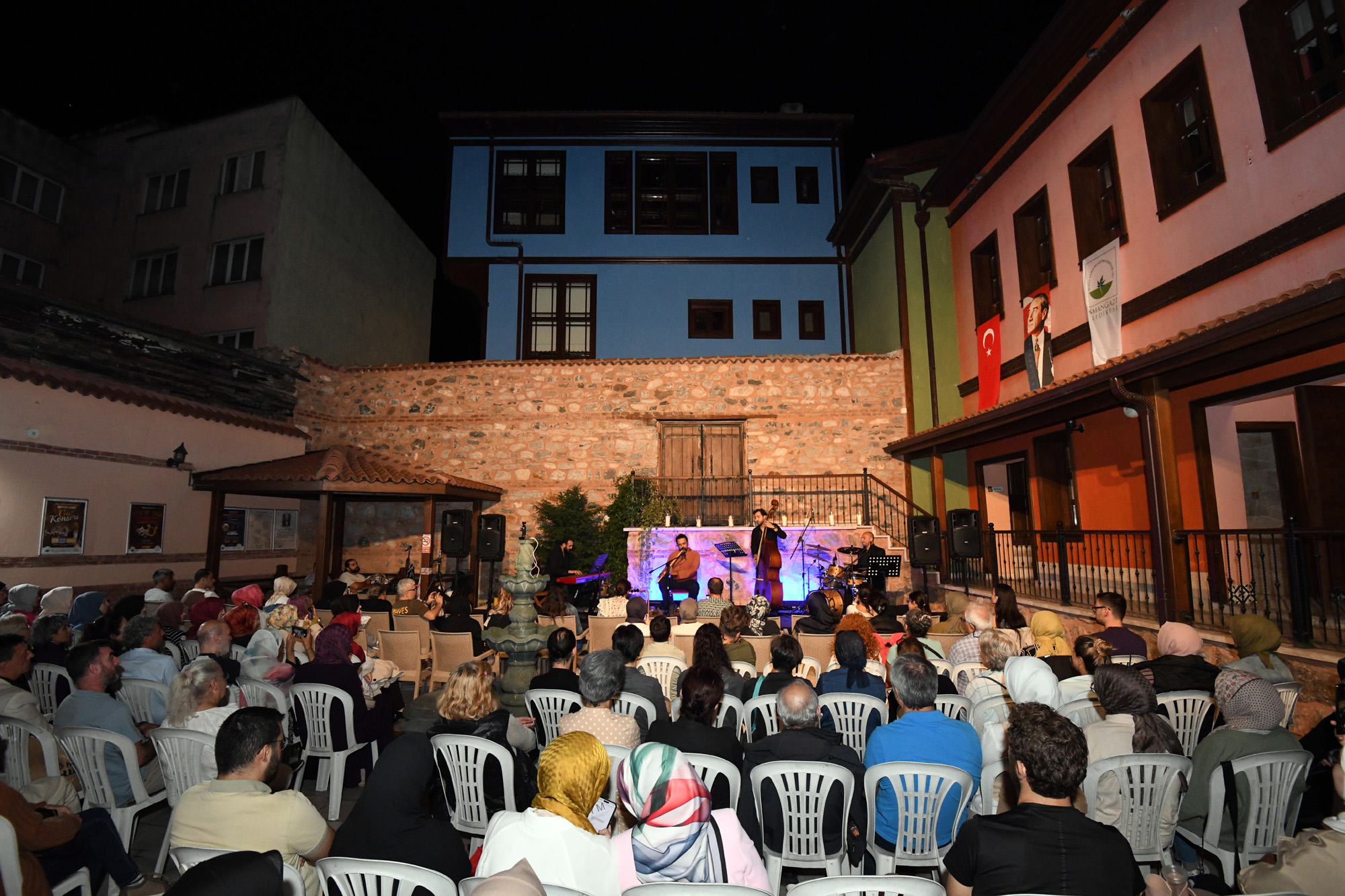 Osmangazi Belediyesi, Doğudan Batıya Etnik Caz Konseri ile müzik tutkunlarına coşkulu bir gece yaşattı. Şadırvanlı Han Eğitim Akademisi’nin bahçesinde gerçekleştirilen konser ile batının cazı ve doğunun etnik müzikleri gibi birbirinden farklı türler arasında kültürel bir köprü oluşturuldu. Katılımcılara yıldızların altında müzik dinleme imkanı sunan konsere, Bursalı sanat severler büyük ilgi gösterdi. Cazla etnik müziğin harmanlandığı konserde, ney/vokalde Sercan Peşan, piyanoda Görkem Ediz, kontrbasta Mert Kocamemiş ve davulda Emre Aydın sahne aldı. Bursalı müzikseverler, doğu-batı ezgilerini ustaca kullanan sanatçıları ilgiyle dinledi. Çok geniş bir yelpaze ile izleyiciye müzik ziyafeti sunan konser, izleyicilerden tam not aldı ve ayakta alkışlandı.