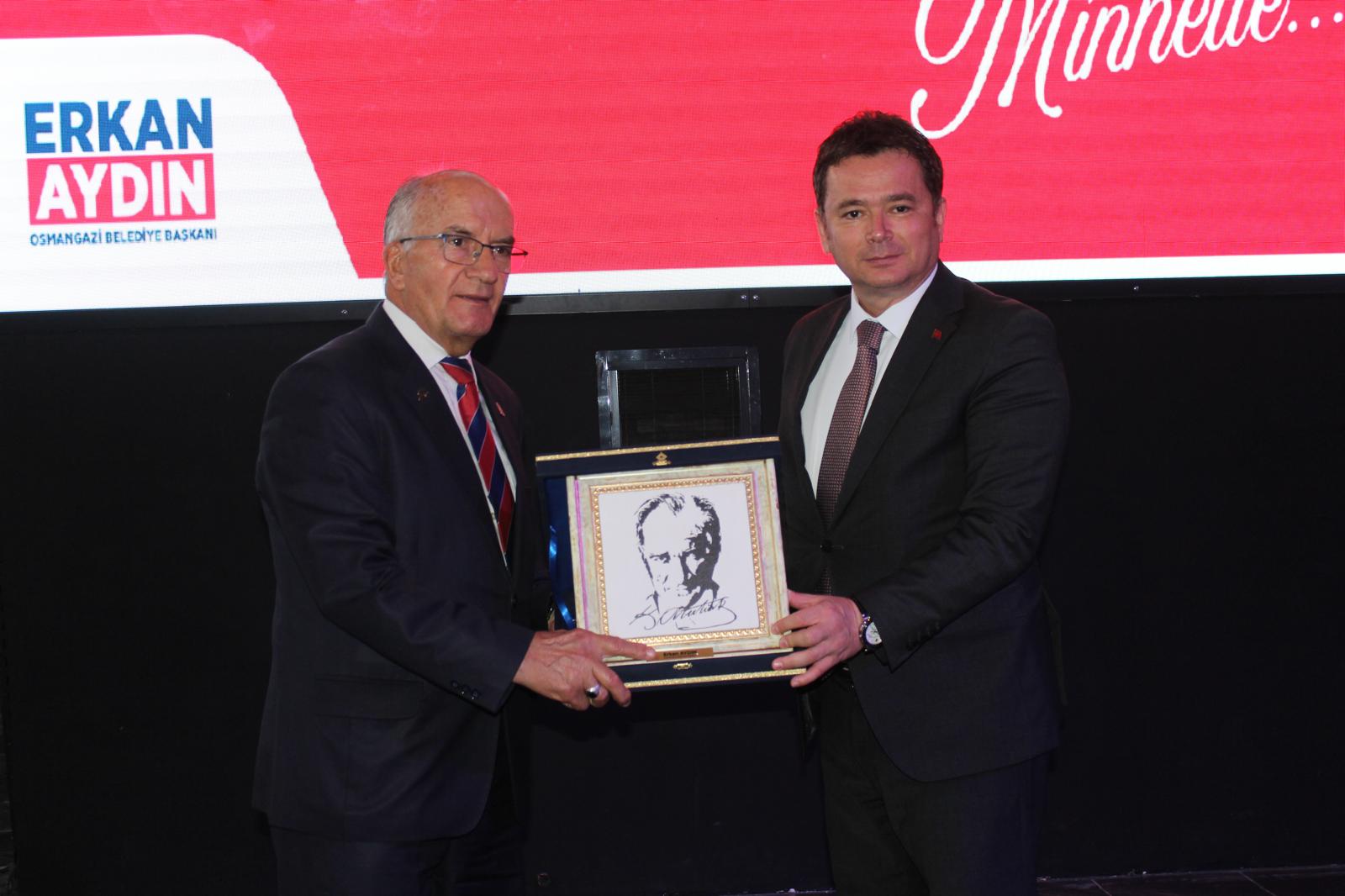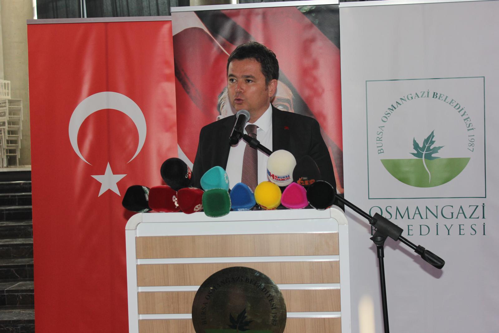Programda konuşma yapan Muharip Gaziler Derneği Bursa Şube Başkanı Adem Erdem, Osmangazi Belediye Başkanı Erkan Aydın’a teşekkür ederek, Bu değerli kıymetli gazileri on ikiye on kala aramayan sadece Osmangazi Belediye Başkanı. Diğer belediye başkanlarımız her zaman başımızın tacı ama aydınlık günler bekleyen değerli Erkan Aydan'a şükranlarımı sunuyorum. Bu ziyafet bir anı değil, kahraman gazilerin unutulmadığını belirtir, kahraman gazi unutulduğu zaman bertaraf ruh, üzülür. Bizler Türkiye Cumhuriyeti Gazi Mustafa Kemal'in gazileriyiz ve askerleriyiz. Genel Başkana saygı, sevgi, selamlar iletiyorum. Böyle bir ilçede yaşadığım için şahsım ve muharip gazi olarak Bursalı olarak gurur duyuyorum. Yürü Erkan başkan, sen yürürsen gaziler ardından yürür, yürü ki seller ardından alınsın.“ dedi.