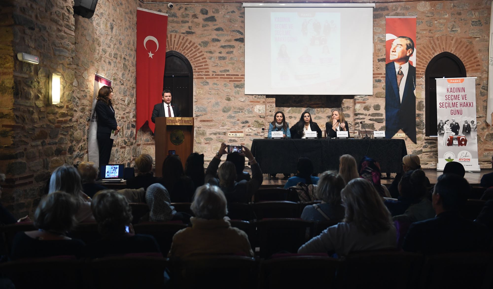Gazeteci Şeyda Gümüş moderatörlüğünde Ördekli Kültür Merkezi’nde düzenlenen “Kadının Seçme ve Seçilme Hakkı” panelinde CHP Bursa Milletvekili Nurhayat Altaca Kayışoğlu, CHP 25 ve 26. Dönem İstanbul Milletvekili Gülay Yedekçi ve CHP 24. Dönem İstanbul Milletvekili Melda Okur, konuşmacı olarak katılarak kadının toplumda, yaşamda ve siyasetteki yerine değinerek haklarını konuştu. Kadınlara seçme ve seçilme hakkının verilişinin 90’ıncı yıl dönümünde düzenlenen panele Osmangazi Belediye Başkanı Erkan Aydın, Bursa Büyükşehir Belediye Başkan Vekili Sinan Nergiz, Osmangazi Belediye Başkan Yardımcısı Mutlu Esendemir ve Osmangazili kadınlar katıldı.