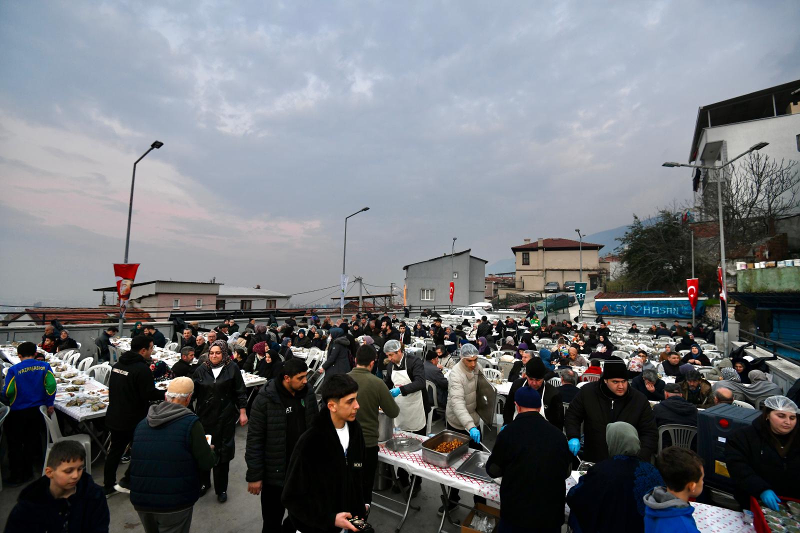 Osmangazi Belediyesi tarafından ilçenin farklı mahallelerinde düzenlenen iftar programları, vatandaşları aynı sofrada buluşturuyor. Bu kapsamda gerçekleştirilen iftar programında İvazpaşa Mahallesi sakinleri gönül sofrasında bir araya geldi. Osmangazi Belediye Başkan Yardımcısı Ahmet Tolga Kornoşor’un da katıldığı programa mahalle halkı yoğun ilgi gösterdi.
