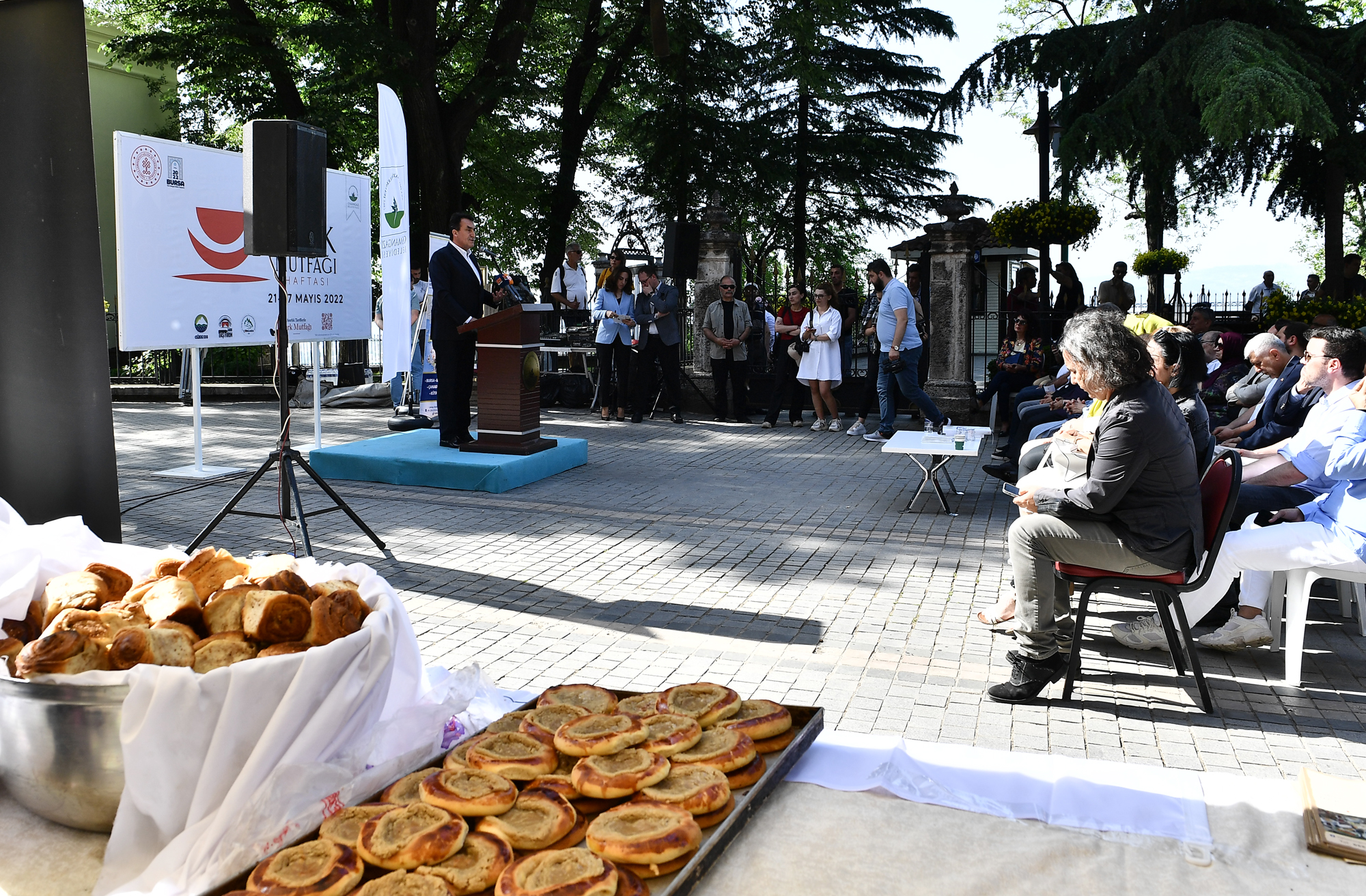 Osmangazi Belediyesi, Cumhurbaşkanı Recep Tayyip Erdoğan’ın eşi Emine Erdoğan’ın himayesinde Kültür ve Turizm Bakanlığı’nın koordinesinde 21-27 Mayıs tarihlerinde kutlanan ‘Türk Mutfağı Haftası’ kapsamında lezzet dolu bir etkinlik düzenledi. Güney Marmara Turistik Otelciler ve İşletmeciler Birliği Derneği (GÜMTOB), Uludağ Yiğitali Kadınları Tarımsal Kalkınma Kooperatifi ve Tarihi Taş Fırın iş birliğinde 1. Murad Hüdavendigar Cami’nin bahçesinde düzenlenen programda, tahinli pide, cevizli lokum ve şerbet gibi coğrafi tescilli işarete sahip yöresel lezzetler katılımcıların beğenisine sunuldu. Bursa’nın yöresel lezzetlerinin sergilendiği programa Osmangazi Belediye Başkanı Mustafa Dündar ile birlikte İl Kültür ve Turizm Müdürü Kamil Özer, GÜMTOB yöneticileri, meclis üyeleri, muhtarlar ve çok sayıda vatandaş katıldı.