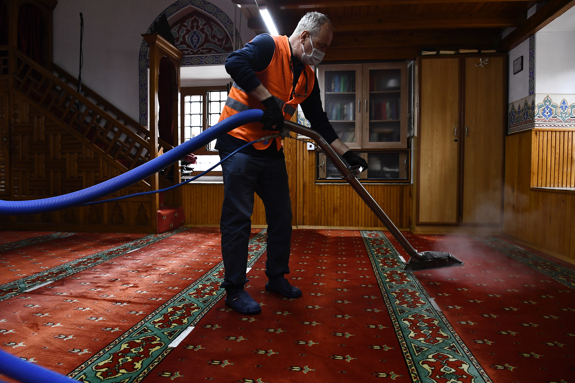 Osmangazi Belediyesi, Ramazan ayı dolayısıyla ilçedeki camilerde detaylı temizlik ve dezenfeksiyon çalışması yürütüyor. Camilerdeki halılar vakumlu mobil yıkama aracı ile yıkanırken, korona virüs salgınına karşı cami içleri, şadırvanlar ve ortak kullanım alanları dezenfekte edilerek daha hijyenik hale getiriliyor.