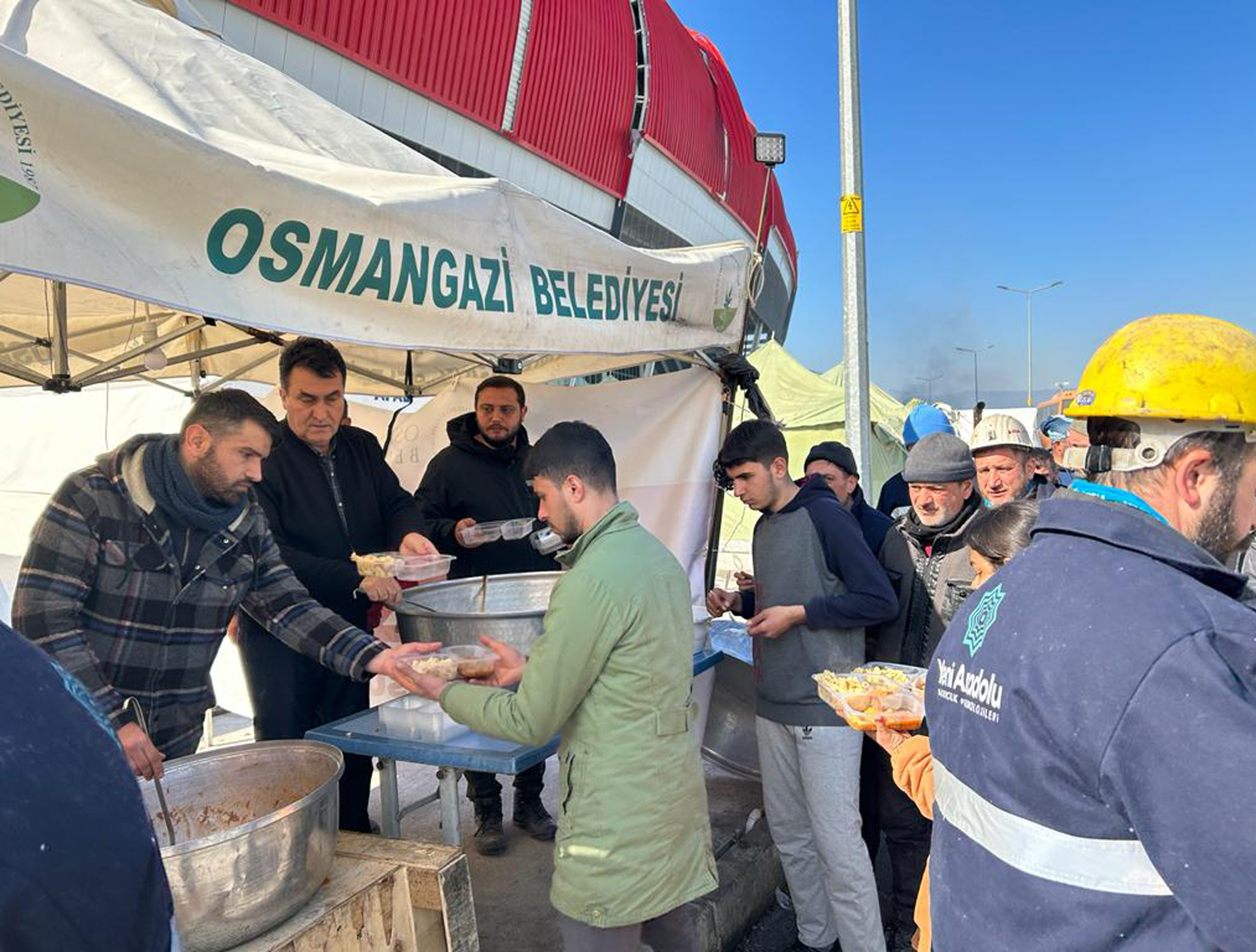 Osmangazi Belediyesi tarafından deprem bölgesinde kurulan iftar ve sahur çadırları Ramazan Ayı boyunca depremzede vatandaşlara hizmet verecek. İslahiye ve Antakya’da kurulan aşevlerinde günde toplam 4 bin kişilik sıcak yemek ikram edilecek.