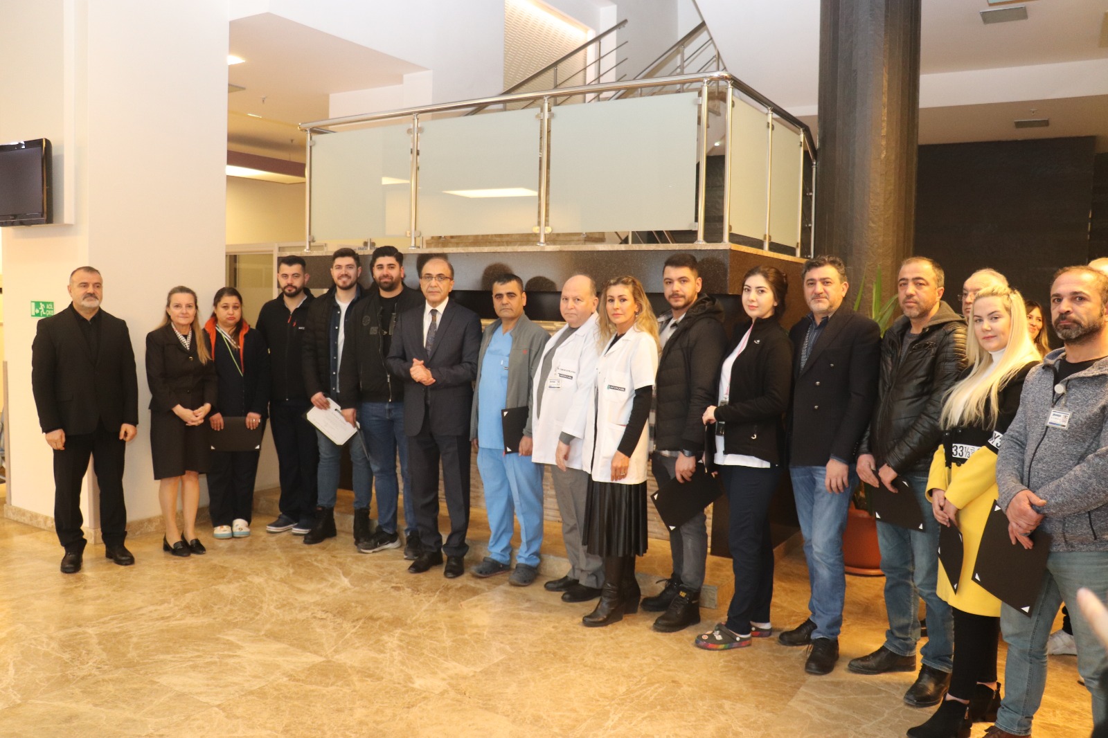 Özel Medicabil Sağlık Grubu Yönetim Kurulu Başkanı Prof. Dr. Ömer Faruk Bilgen, yönetim kurulu üyeleri ve çalışanlar tarafından kapıda karşılanan ekibe hizmetleri için teşekkür edilerek sertifika verildi.