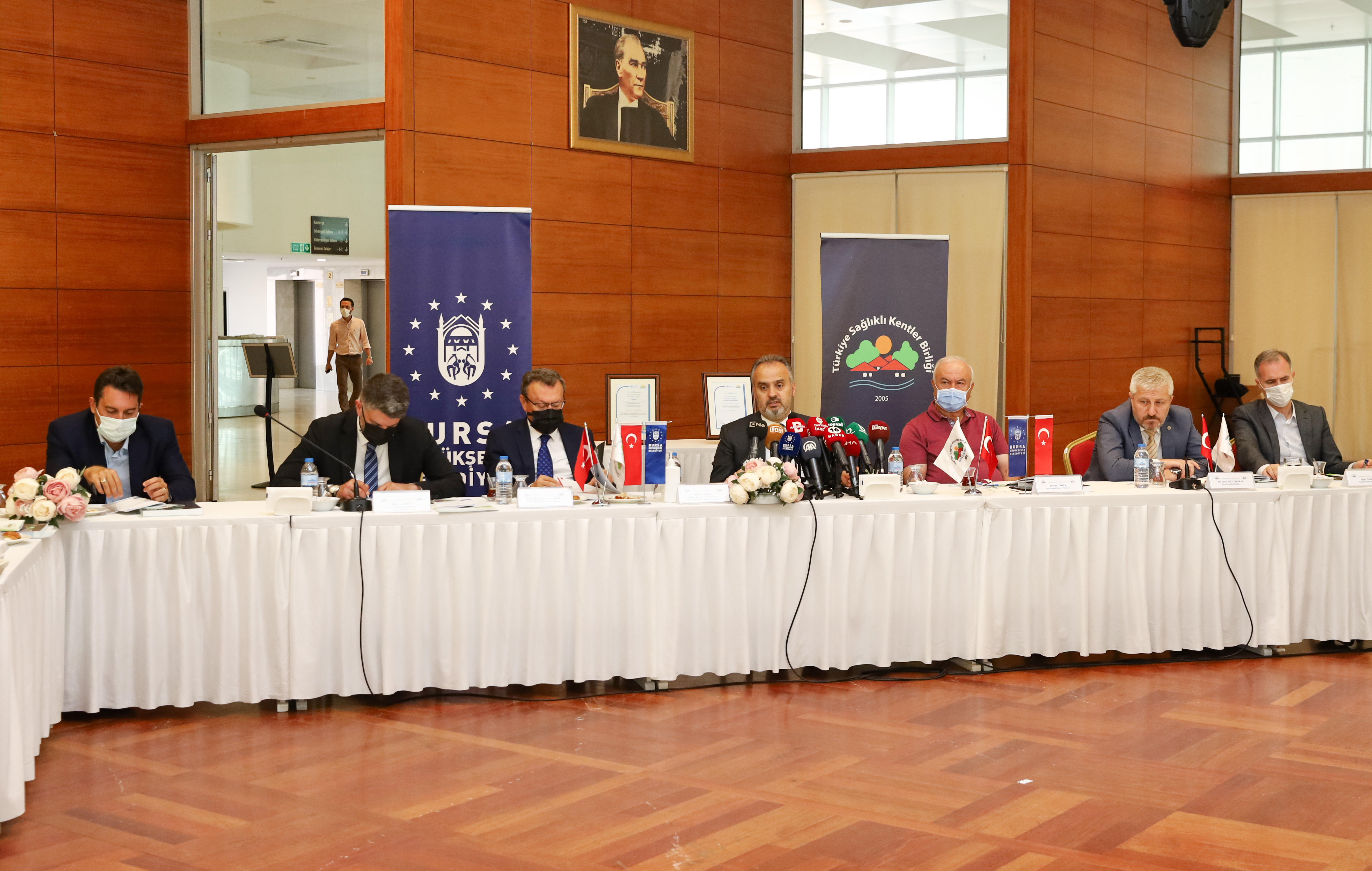 Bursa Büyükşehir Belediye Başkanı ve Türkiye Sağlıklı Kentler Birliği Başkanı Alinur Aktaş, SKB tarafından son dönemde yürütülen çalışmalar hakkında bilgilendirme yapmak amacıyla Atatürk Kongre Kültür Merkezi’nde toplantı düzenledi. Toplantıya, Büyükşehir Belediye Başkanı Alinur Aktaş’ın yanı sıra Uludağ Üniversitesi Rektörü Prof. Dr. Saim Kılavuz, Bursa İl Sağlık Müdürü Dr. Fevzi Yavuzyılmaz, Bursa Kent Konseyi Başkanı Şevket Orhan, İnegöl Belediye Başkanı Alper Taban, Bursa Teknik Üniversitesi Rektör Yardımcısı Prof. Dr. Beyhan Bayhan, Büyükşehir Belediyesi Genel Sekreteri Ulaş Akhan, SKB Danışma Kurulu üyeleri, meclis üyeleri ve belediye bürokratları katıldı.