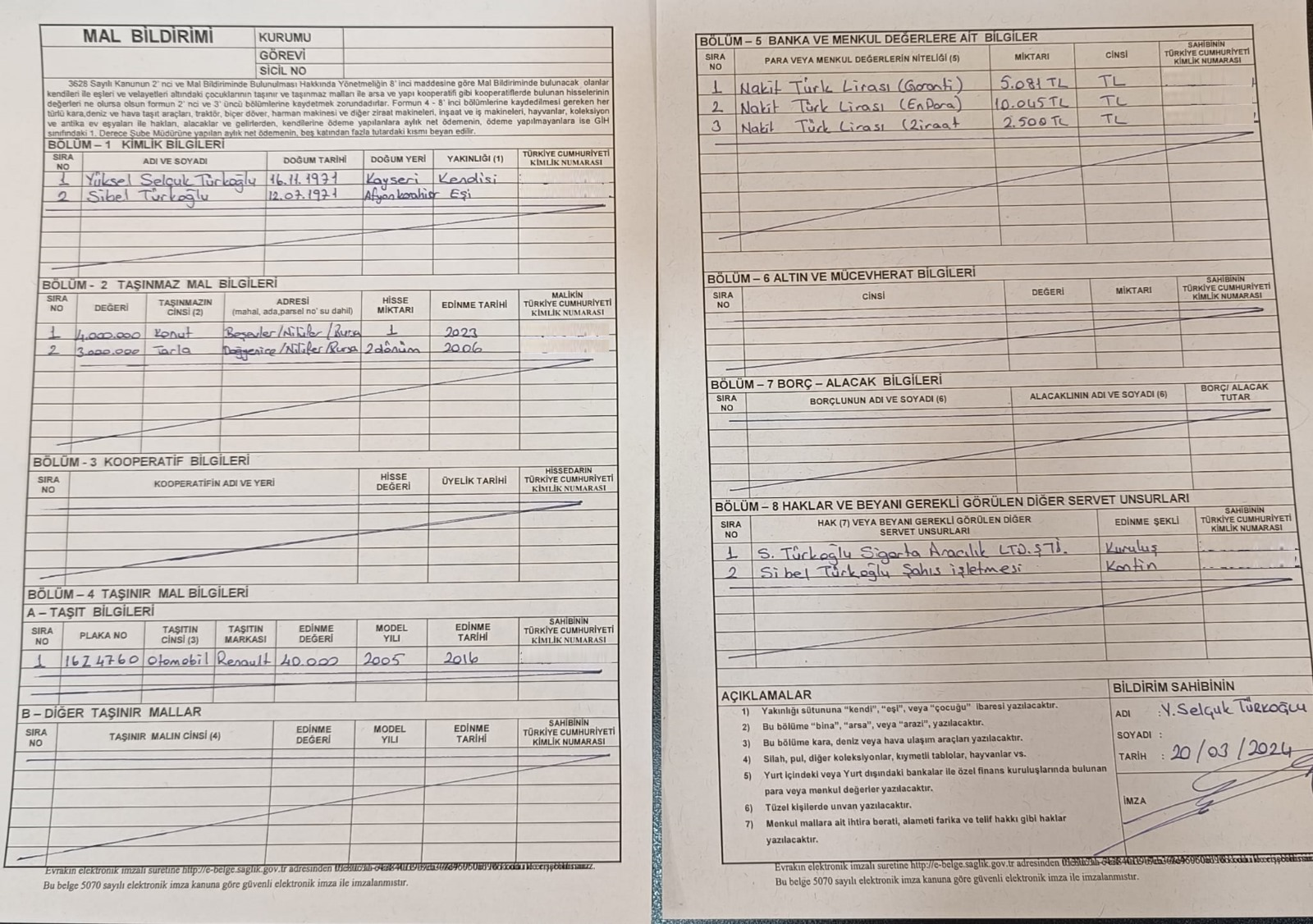 Hemşerilerimiz bizlerin göreve gelmeden önce sahip olduğumuz maddi varlıklarımızı bilmeleri; bunları, sonraki süreçte edinilen veya edinilecek olan varlıklarımızla kıyaslamalarını sağlayacaktır.