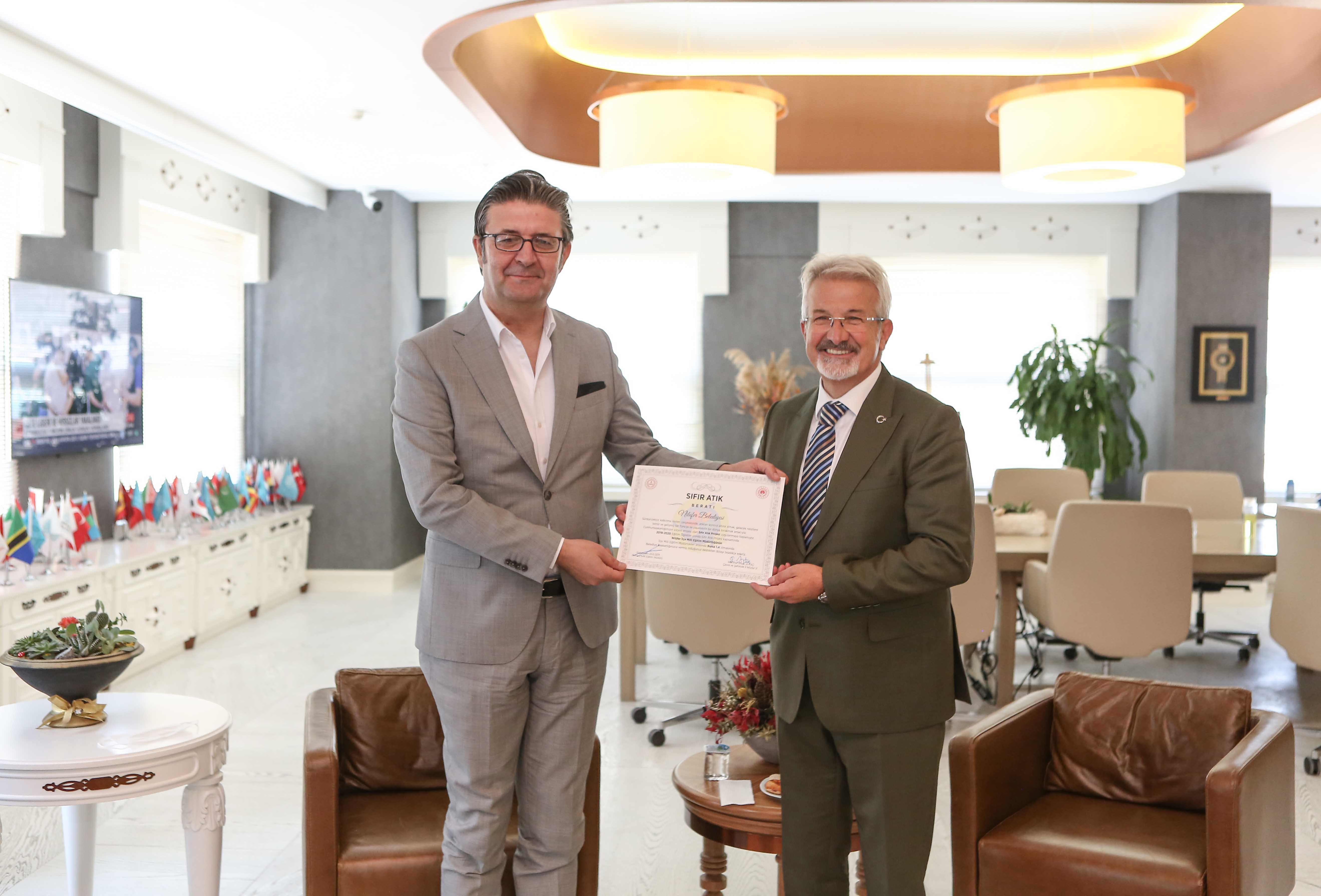 Cumhurbaşkanlığı himayesinde başlatılan sıfır atık projesi çerçevesinde Bursa’da okullardan en fazla geri kazanılabilir atık toplanan ilçe Nilüfer oldu. İlçe Milli Eğitim Müdürü Mustafa Muharrem Tüfekçi, Nilüfer Belediye Başkanı Turgay Erdem’e projeye katkılarından dolayı sıfır atık beratı takdim etti.