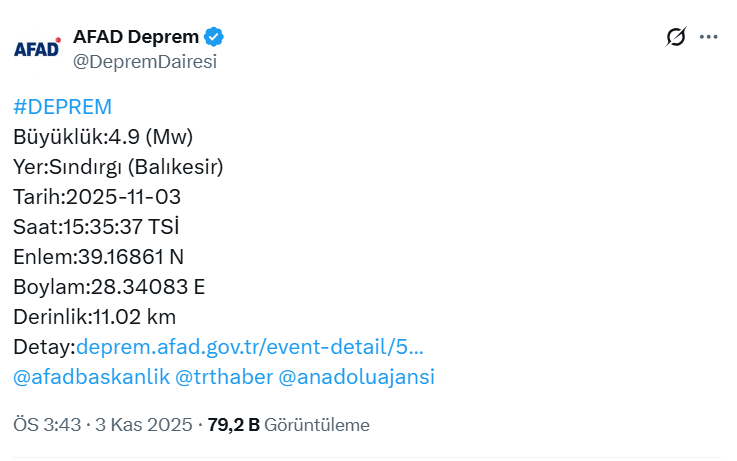 Bursa başta olmak üzere çevre illerde de hissedilen deprem kısa süreli paniğe neden oldu. Sındırgı merkezli artçı sarsıntıların devam ettiği bildirildi. Yetkililer, vatandaşları riskli binalardan uzak durmaları ve resmi açıklamaları takip etmeleri konusunda uyardı.