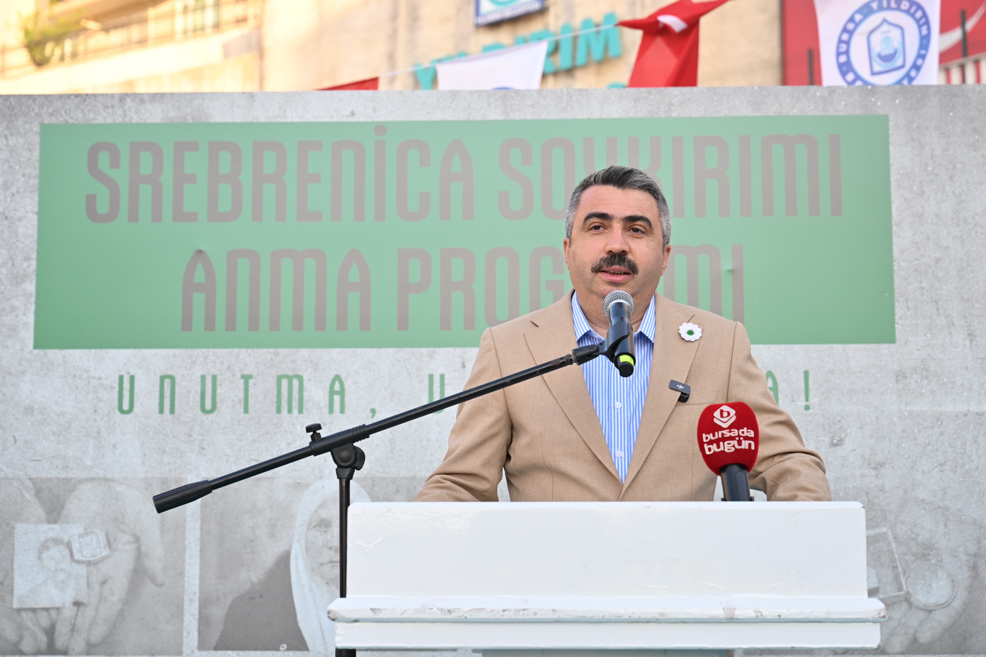 Yıldırım Belediye Başkanı Oktay Yılmaz, Bosna'da yaşanan acıların hala yüreklerdeki tazeliğini koruduğunu vurgulayarak, "Binlerce insan yalnızca isimleri, inançları ve kimlikleri sebebiyle hunharca katledildi. İnsanlık tarihinin en karanlık sayfalarından biri olan bu soykırımın acısını sadece bizler değil, vicdan sahibi tüm insanlar derinden hissediyor. Sadece insanlar değil, bugün Bosna'nın sokakları, yapıları ve mezar taşları dahi bu yası tutuyor. Bilge Kral Aliya İzzetbegoviç'in 'Ne yaparsanız yapın soykırımı unutmayın. Çünkü unutulan soykırım tekrarlanır' sözünü kendimize rehber edinerek, yaşanan acıların tekrar etmemesi için bugün buradayız. Srebrenitsa'da zalimler tarafından yaşam hakları ellerinden alınan, bir mezar yeri bile çok görülen kardeşlerimizi gönlümüzde ve kalbimizde yaşatıyoruz. Aziz şehitlerimizi ve yaşadığımız acıları asla unutmayacak, bu hatıralarımızı daima canlı tutacağız," şeklinde konuştu.