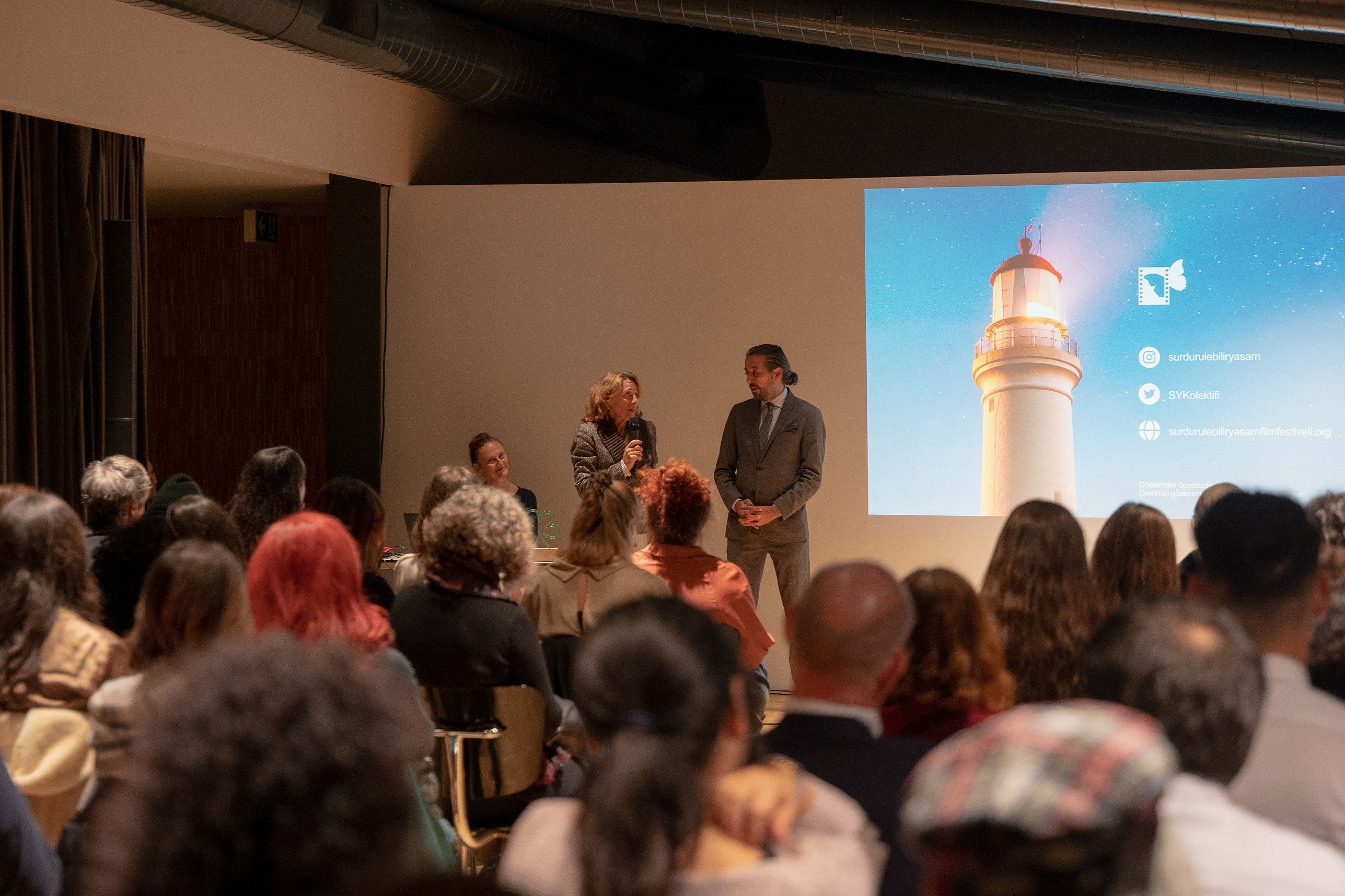 SYFF eş kurucuları Pınar Öncel ve Tuna Özçuhadar’ın kısa konuşmalarının ardından Festival Destekçisi Heinrich Böll Stiftung Derneği Türkiye Temsilciliği’nden direktör yardımcısı Julia Bartmann ile Tema Destekçisi UNDP Türkiye’yi temsilen UNDP İstanbul Bölgesel Merkezi Program Koordinatörü Ekaterina Paniklova yaptıkları konuşmalarla SYFF’ye ve filmlerin sürdürülebilirlik konusundaki etkisine verdikleri önemi ifade ederek keyifli bir festival dilediler.