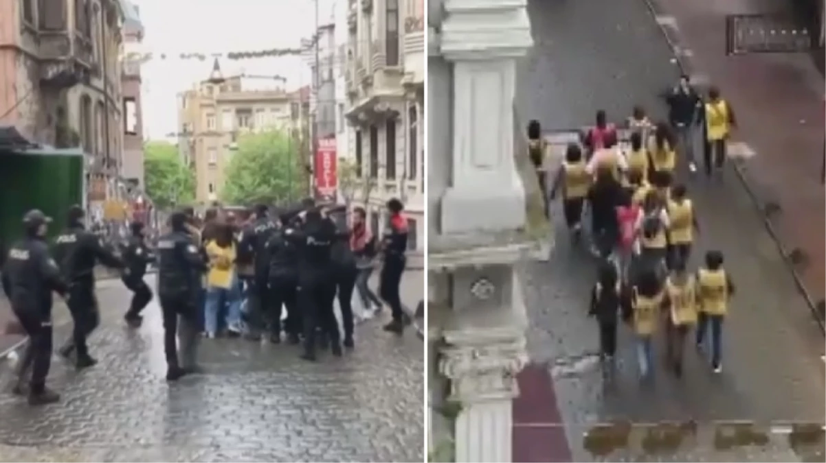 İstiklal Caddesi'nin ara sokaklarından Taksim Meydanı'na yürümek isteyen gruba polis müdahale etti. Pankart açıp yürüyen yaklaşık 15 kişilik grup gözaltına alındı.