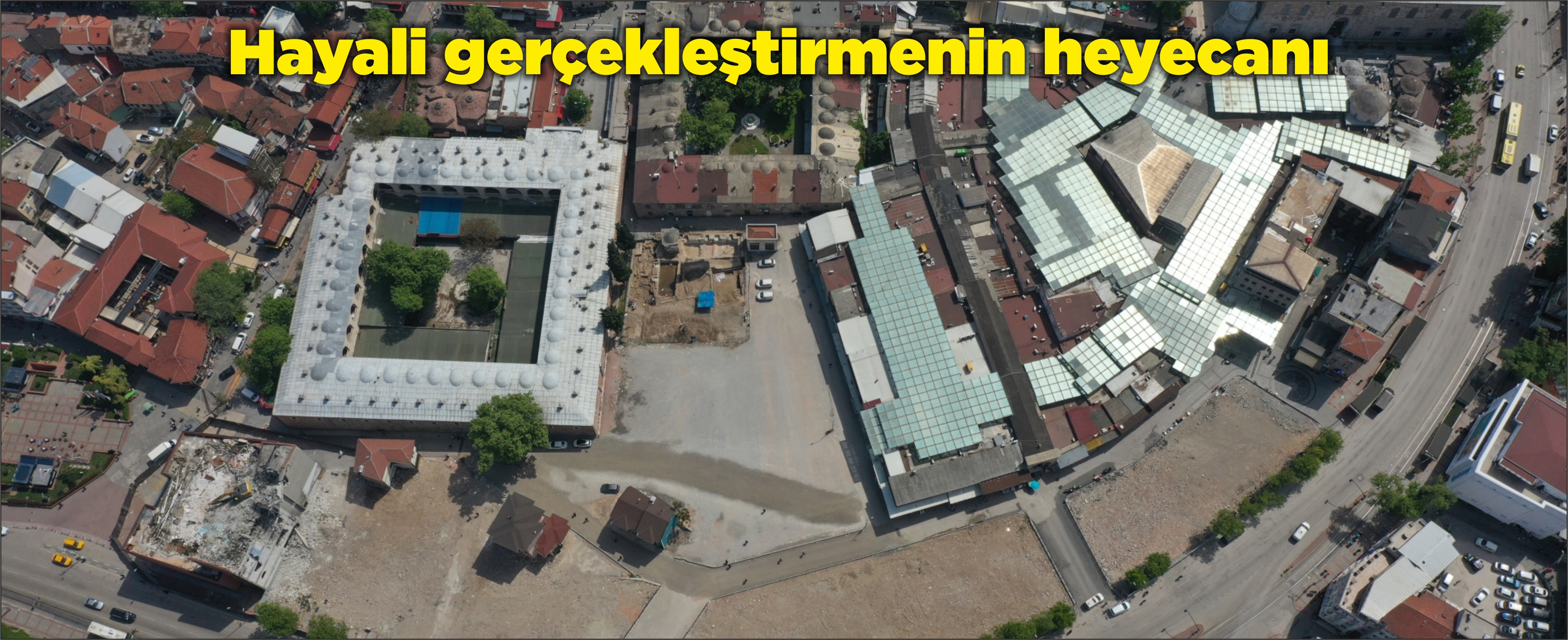 Osmanlı'nın ilk başkenti olan Bursa'da 14. yüzyılda oluşmaya başlayan, 16. yüzyılda han, bedesten ve çarşıların oluşumuyla gelişimini tamamlayan Tarihi Çarşı ve Hanlar Bölgesi’ni eski ihtişamına kavuşturacak projede önemli bir mesafe alındı. Büyükşehir Belediyesi’nin ‘Çevre Şehircilik ve İklim Değişikliği Bakanlığı tarafından da desteklenen projesi, geçtiğimiz yıl ağustos ayında Kızılay binasının yıkılmasıyla başlamıştı. Çalışmalar kapsamında ilk etapta normal kamulaştırmalarla 15 parseldeki binalarda yıkım yapılırken, kamulaştırma süreçlerinin uzaması üzerine geçen yıl nisan ayında Cumhurbaşkanı Recep Tayyip Erdoğan’ın imzasıyla bölge için ‘acele kamulaştırma kararı’ alınmıştı. Bu kararın ardından da hem kamulaştırma hem de yıkım çalışmaları hız kazanmıştı. Proje kapsamında 15’i normal, 33’ü ise acele kamulaştırma kararıyla toplam 48 parselde 37 binanın yıkımı tamamlanmıştı. Proje alanında kalan alışveriş merkezine ait binanın yıkımı için başlatılan süreç de nihayet tamamlandı. Binanın bodrum katlarının kullanılacak olması nedeniyle yıkım kontrollü bir şekilde yapılırken; Büyükşehir Belediye Başkanı Alinur Aktaş, proje alanında yaptığı açıklamada, tarihe saygı amacıyla başlattıkları proje ile Bursa’nın gizli hazinesini gün yüzüne çıkardıklarını söyledi.