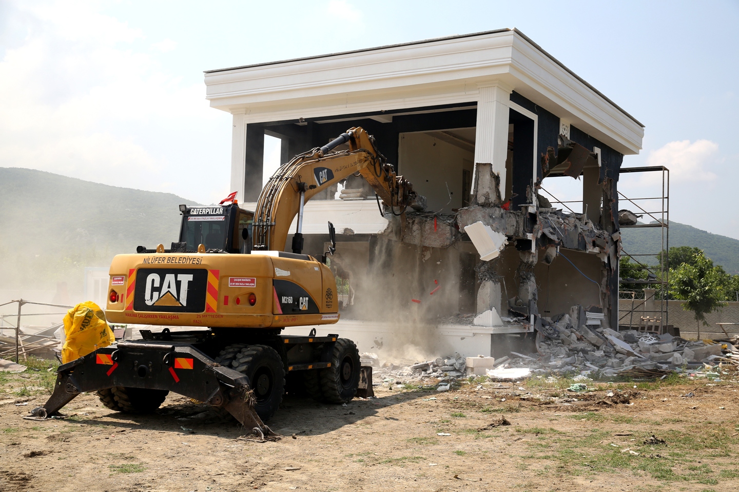 Nilüfer Belediyesi, Fadıllı Mahallesi’nde 5 dönümlük tarım alanı içine yapılan lüks kaçak binayı yıktı.