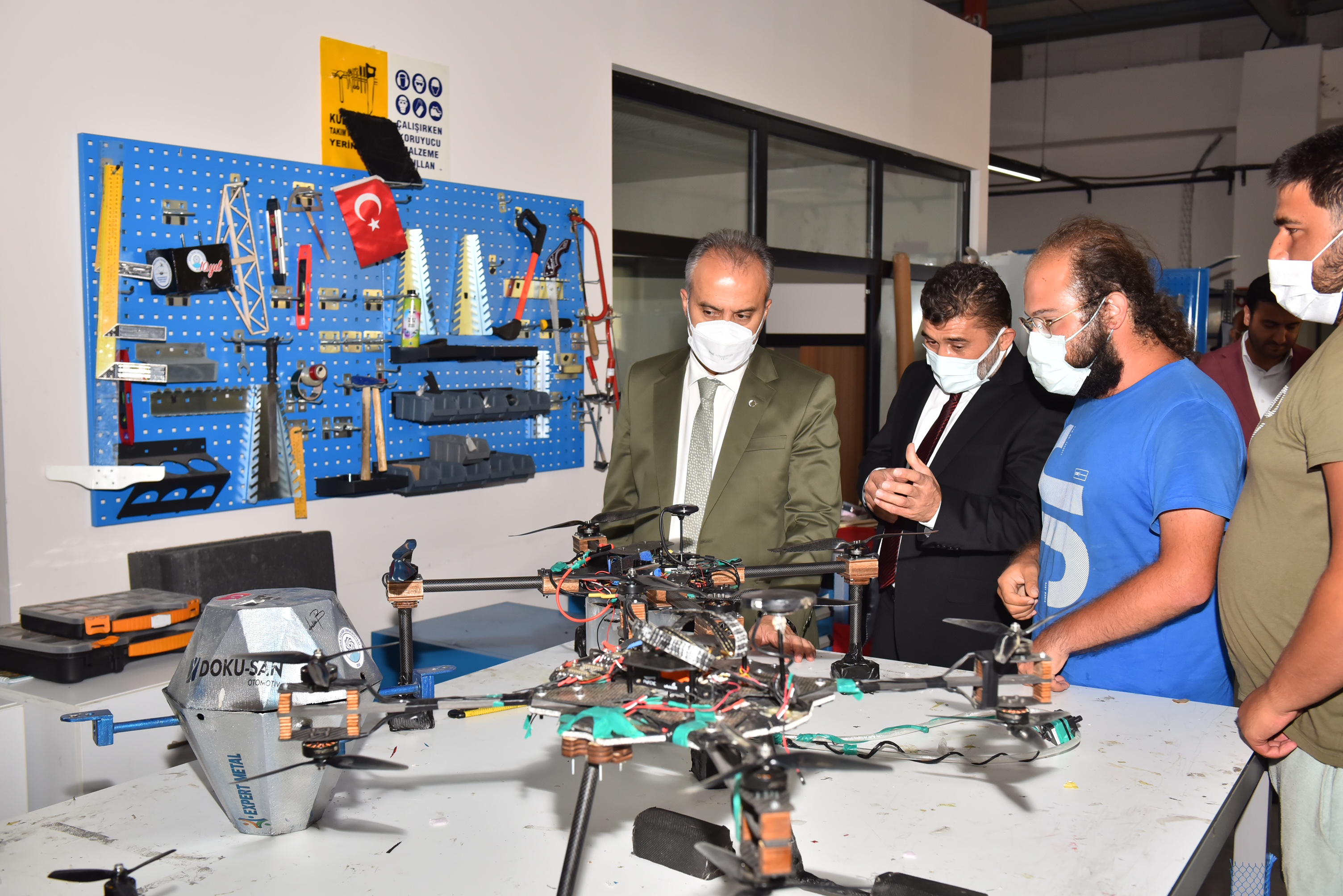Bu yıl Teknofest'e 100 takımla başvuran Bursa Teknik Üniversitesi'ni ziyaret eden Bursa Büyükşehir Belediye Başkanı Alinur Aktaş, yarışma için adeta atölyelerde sabahlayan gençlere hem moral, hem