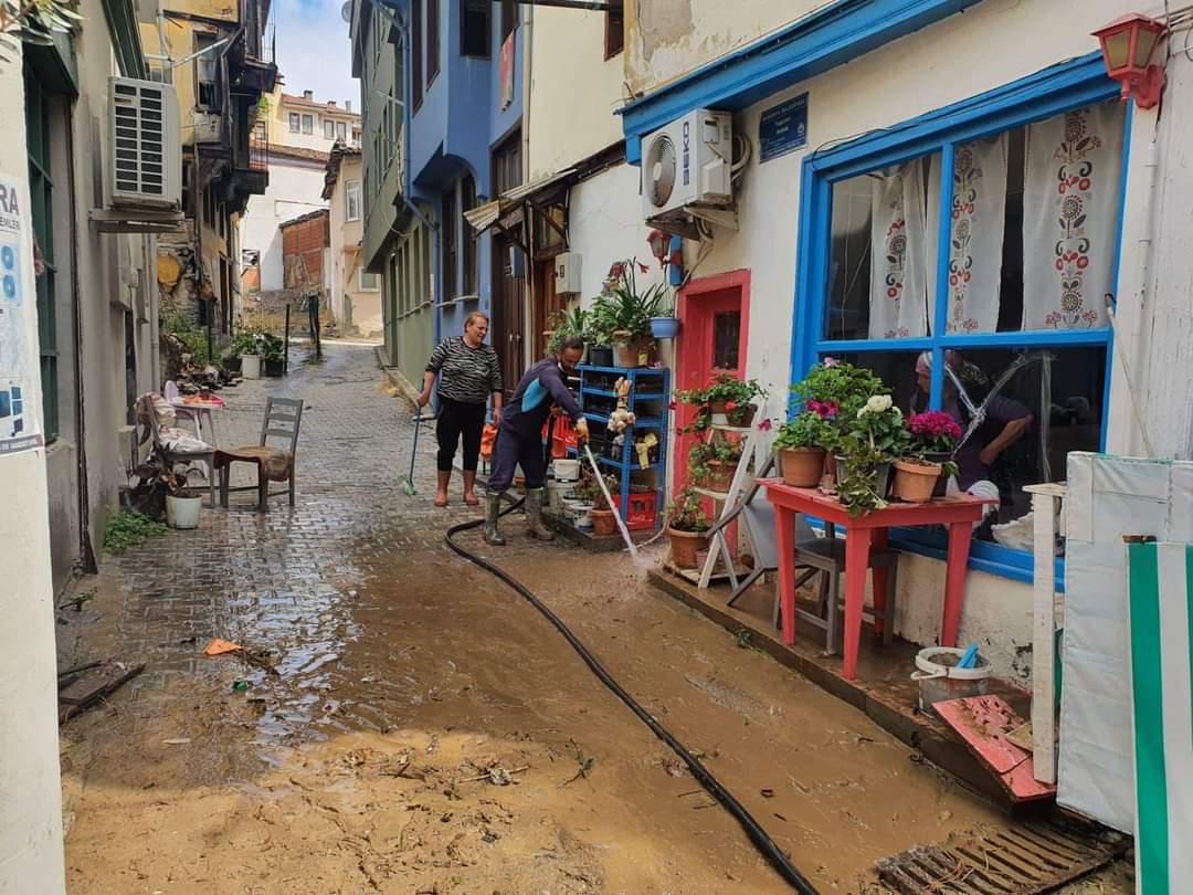 Olayın ardından sabah saatlerinde Bursa Büyükşehir Belediyesi İtfaiye Daire Başkanlığı, Ulaşım Dairesi Başkanlığı, BUSKİ ve AFAD ekipleri, bölgede yaşamı normale çevirmek için hummalı bir çalışma başlattı. BUSKİ 24 personel ve 12 iş makinesi, Büyükşehir Belediyesi de 14 personel ve 11 iş makinesi ile çalışmalara destek verdi. Çalışmalar kapsamında ev ve iş yerlerine dolan sular vidanjörlerle tahliye edilirken, çamurla kaplanan yollar temizlendi, zarar gören yolların onarımı için de çalışma başlatıldı.